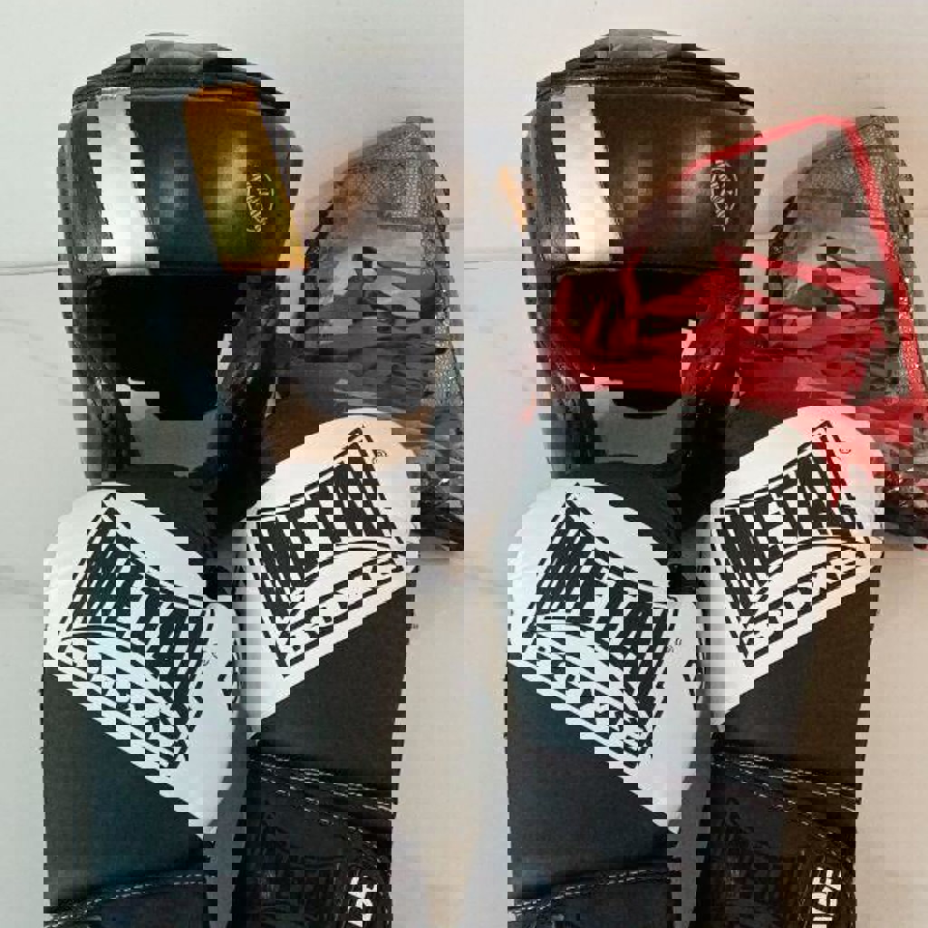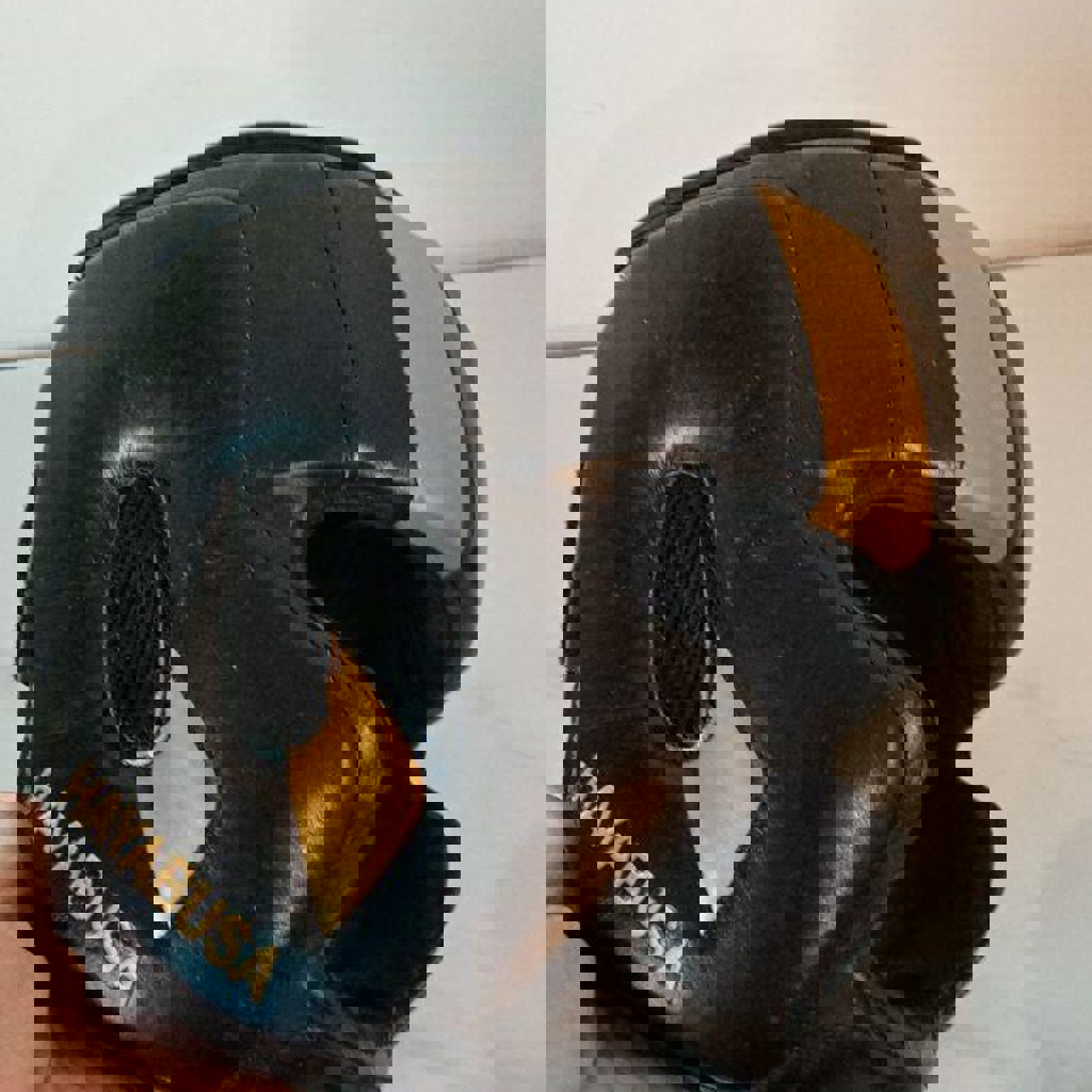 Перчатки боксерские 14 унций и шлем хаябуса (не оригинал но нормальный, держится хорошо, материал хороший)