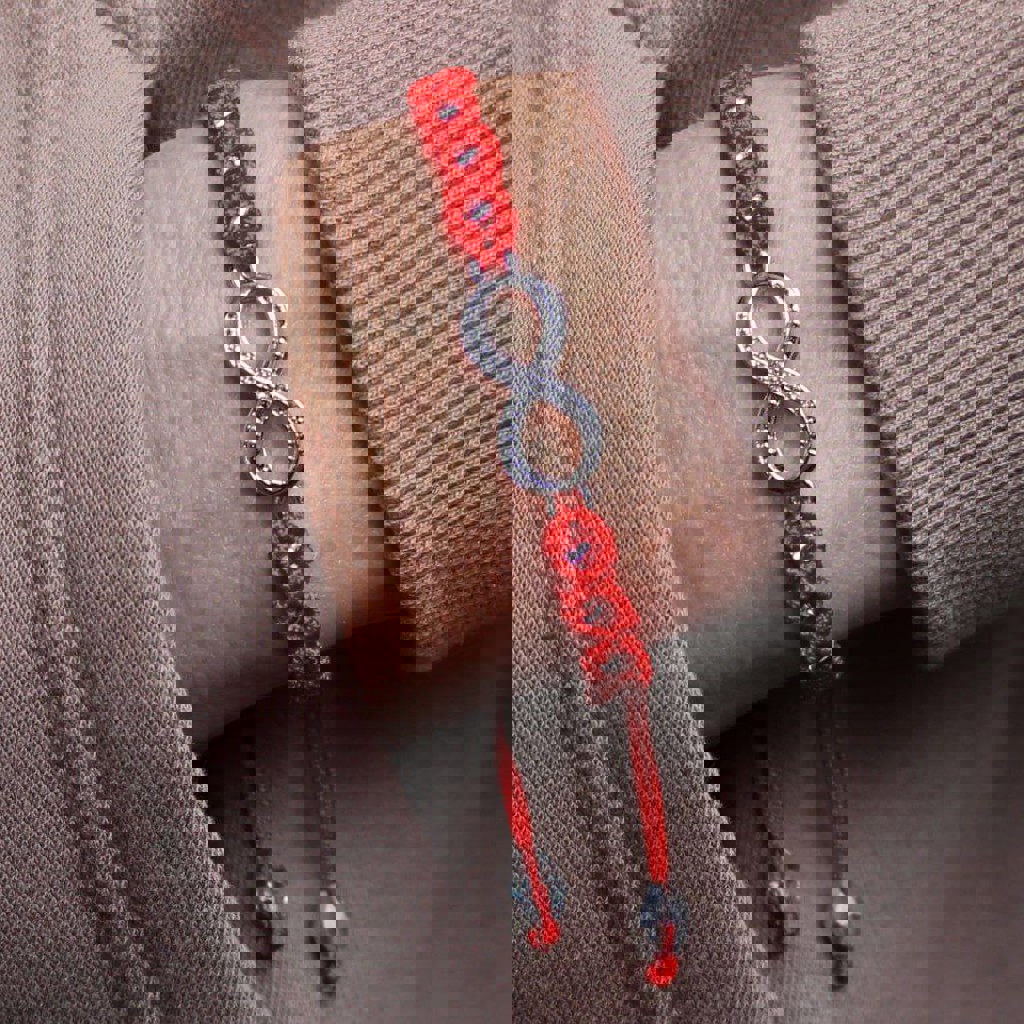 Плетёный браслет из прочной нейлоновой нити с металлической подвеской «Бесконечность». Размер подвески: 2 × 1 см. Регулируемый скользящий замок — подходит на любое запястье. Цвет: красная нить. Знак бесконечности символизирует вечность, бесконечные возможности и непрерывный поток жизни. Красная нить считается мощным оберегом, защищающим владельца от негативной энергии и зла. Украшение гармонично впишется в любой стиль и станет приятным символом удачи и благополучия.
