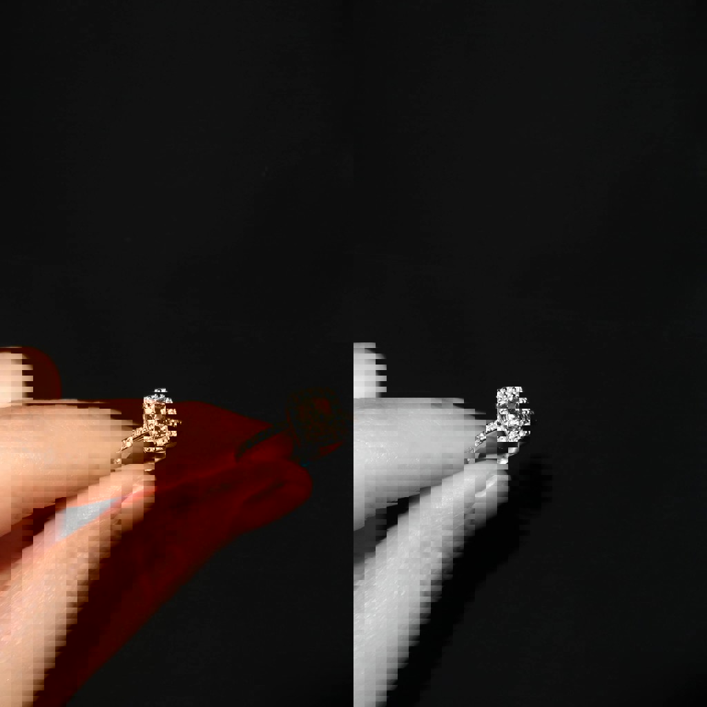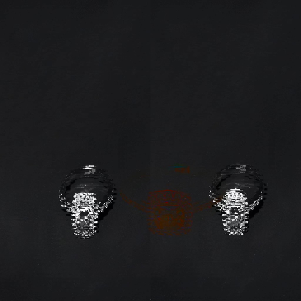 Природный бриллиант — 0.85 карата, белое золото 750 пробы (18K), общий вес изделия: 2.59 г, классический дизайн с дополнительными камнями, состояние хорошее.