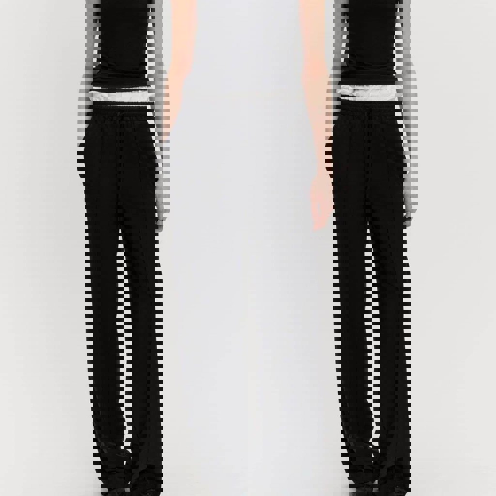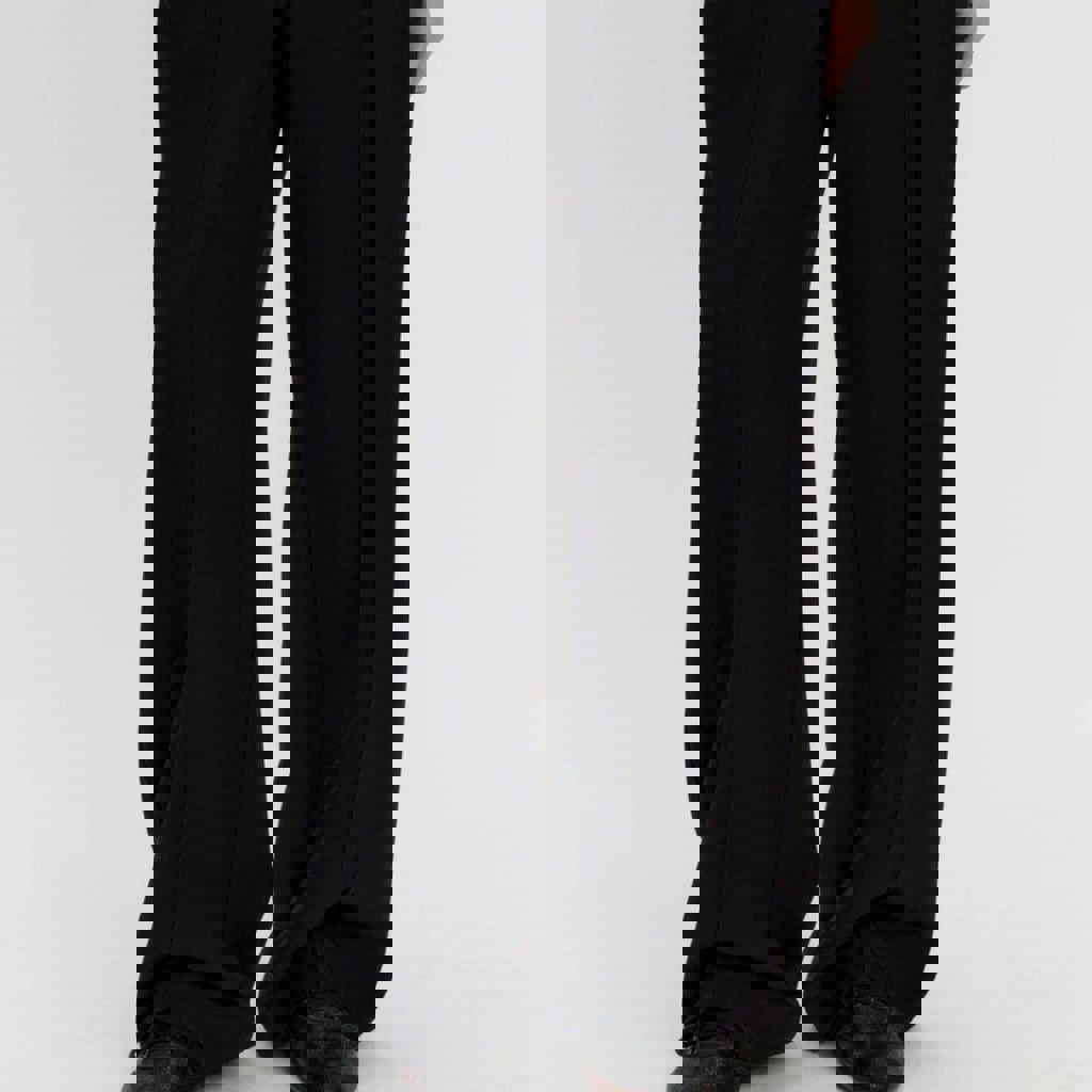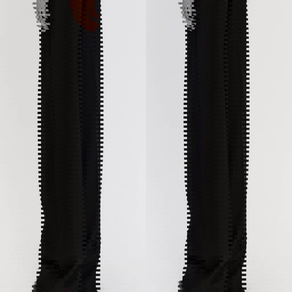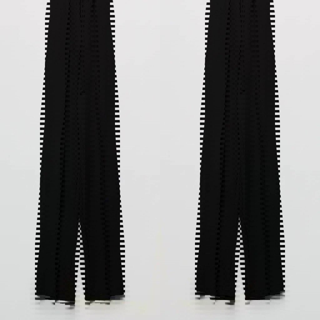 Широкие брюки из костюмной ткани с гладкой текстильной фактурой, средняя посадка, стрелки, пояс-резинка на завязках. Для расслабленных повседневных образов. Новые.