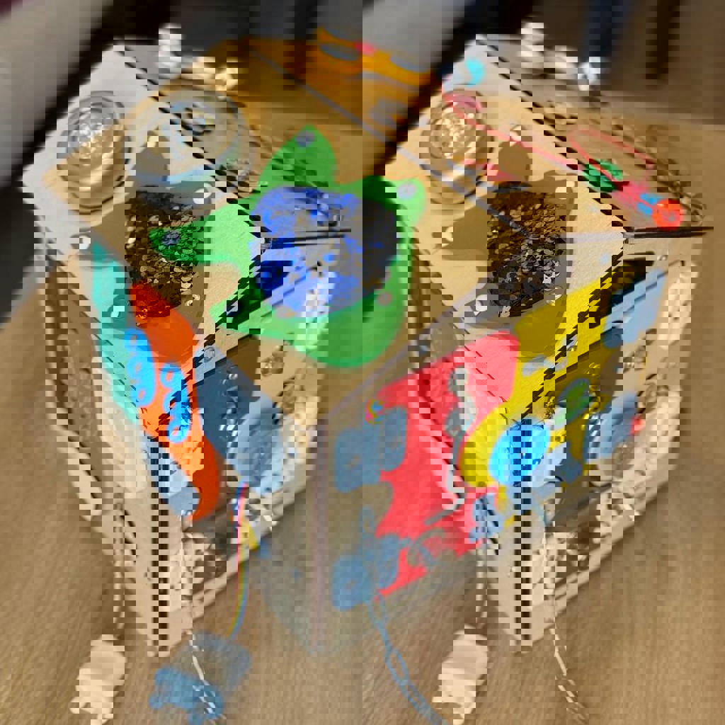 Бизиборд, который также можно использовать как ходунки. Отлично подходит для развития моторики у детей.
