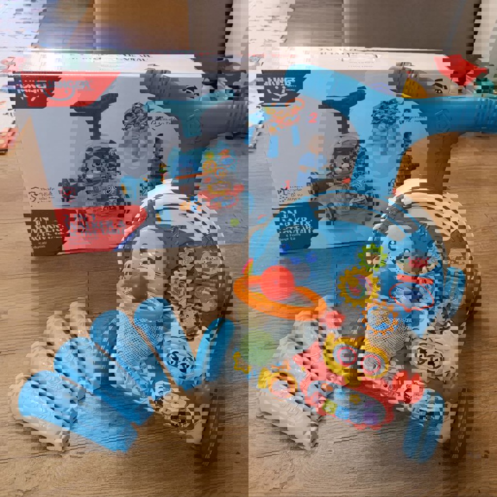 Ходунки-каталка 2 в 1 Caretero Spark для детей. Устойчивая конструкция, игровой столик + съемное пианино, развивающие яркие игрушки, регулируемая высота руля (46–48 см), складные, с блокировкой колес.