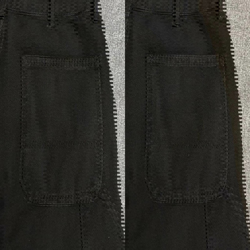Новые без бирок джинсовые шорты карго / карпентеры черного цвета с двойным коленом. Размер 34, но на моем 32 сидят тоже отлично, свободный крой (loose fit). Полуобхват пояса - 44 см, длина - 50 см.