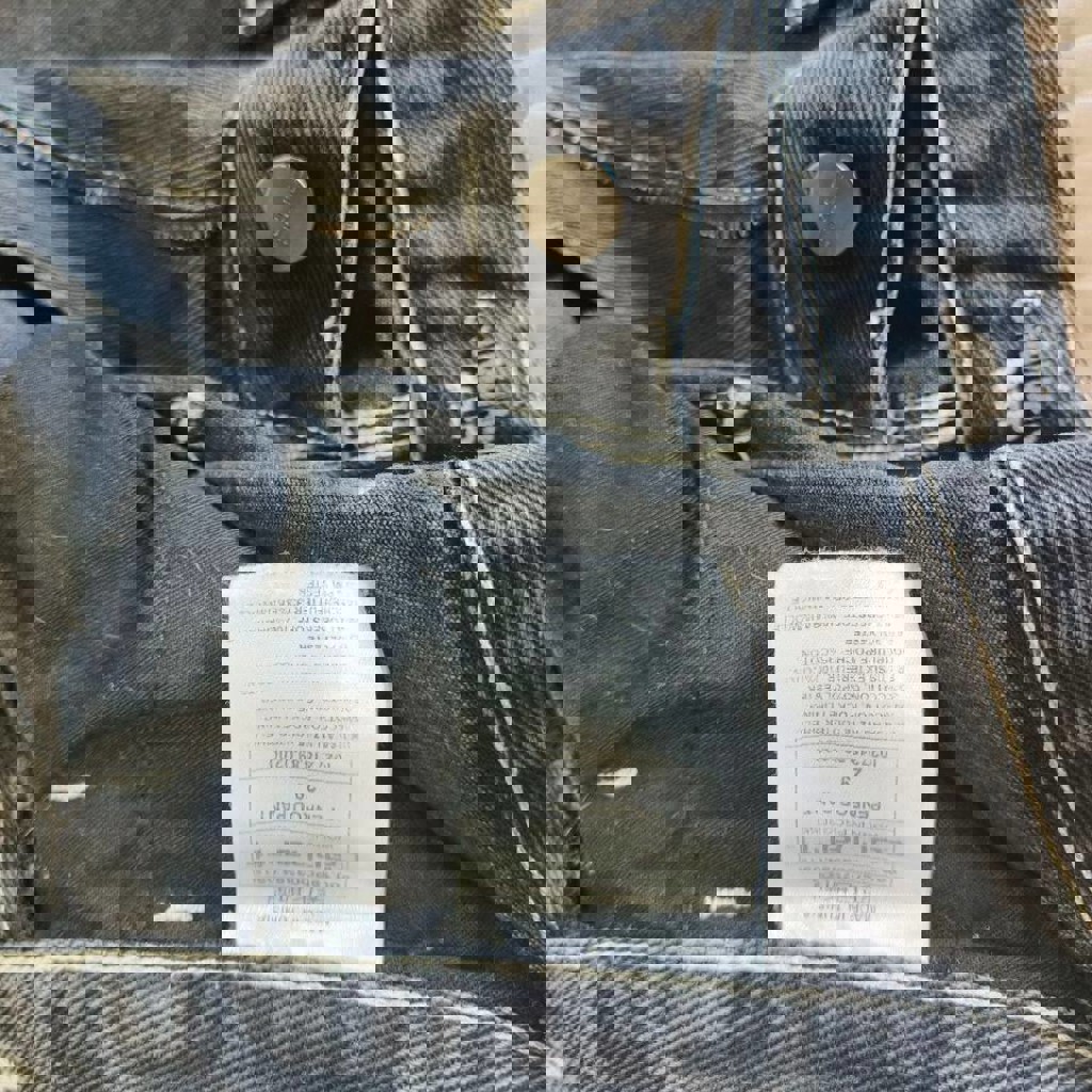 Примерно размер 44. Ткань плотная, как надо, крой прямой.
