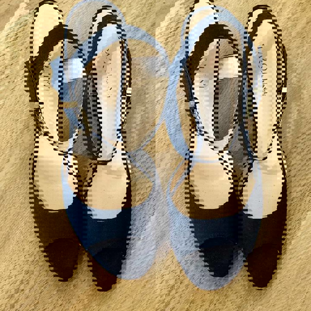 В идеальном состоянии, кожа + замша темно синего цвета. Качество супер, мне малы