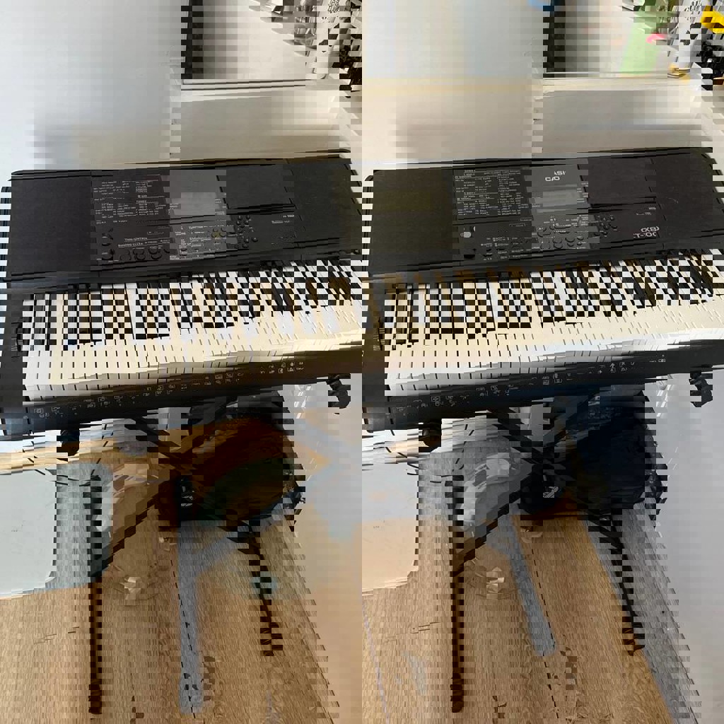 Фортепиано синтезатор Casio на пять октав, с отсеком для наушников в идеальном состоянии. Множество различных звуковых фильтров, отлично подойдет даже для детей. В набор входит регулируемая подставка/стойка и чехол для него фирмы KTL. Все документы впридачу.