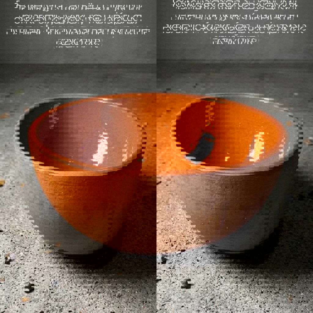 Керамическая чаша из глины объемом 1,5 литра. Внутри покрыта прозрачной защитной глазурью с естественным эффектом кракелюра. Идеально подходит для использования в духовке, сохраняет вкус продуктов.