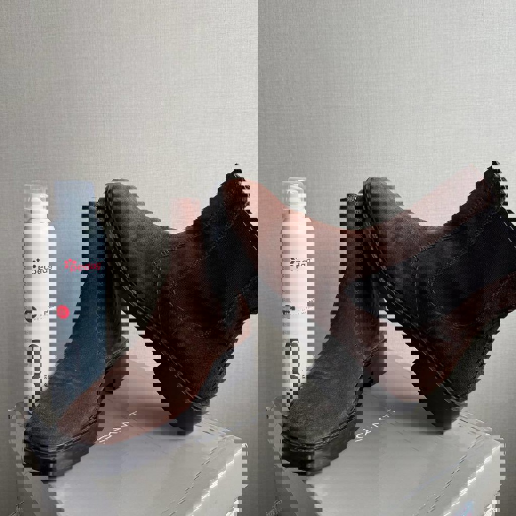 Шоколадная замша 🍫, удобные и в отличном состоянии ✨. В подарок — защитный спрей 💦🛡️
