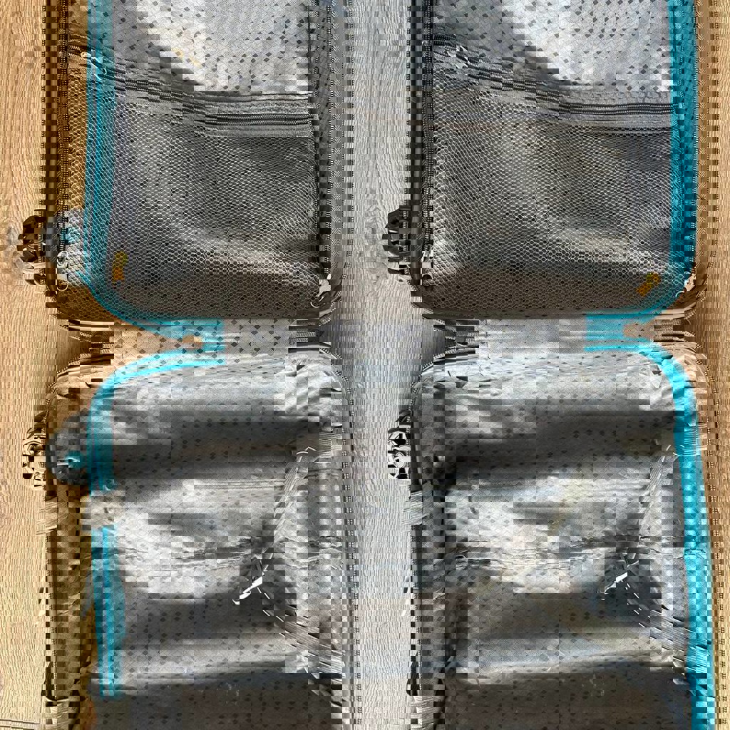 Размер 20*30*43. Колесики съемные. Всего 4 раза летал.