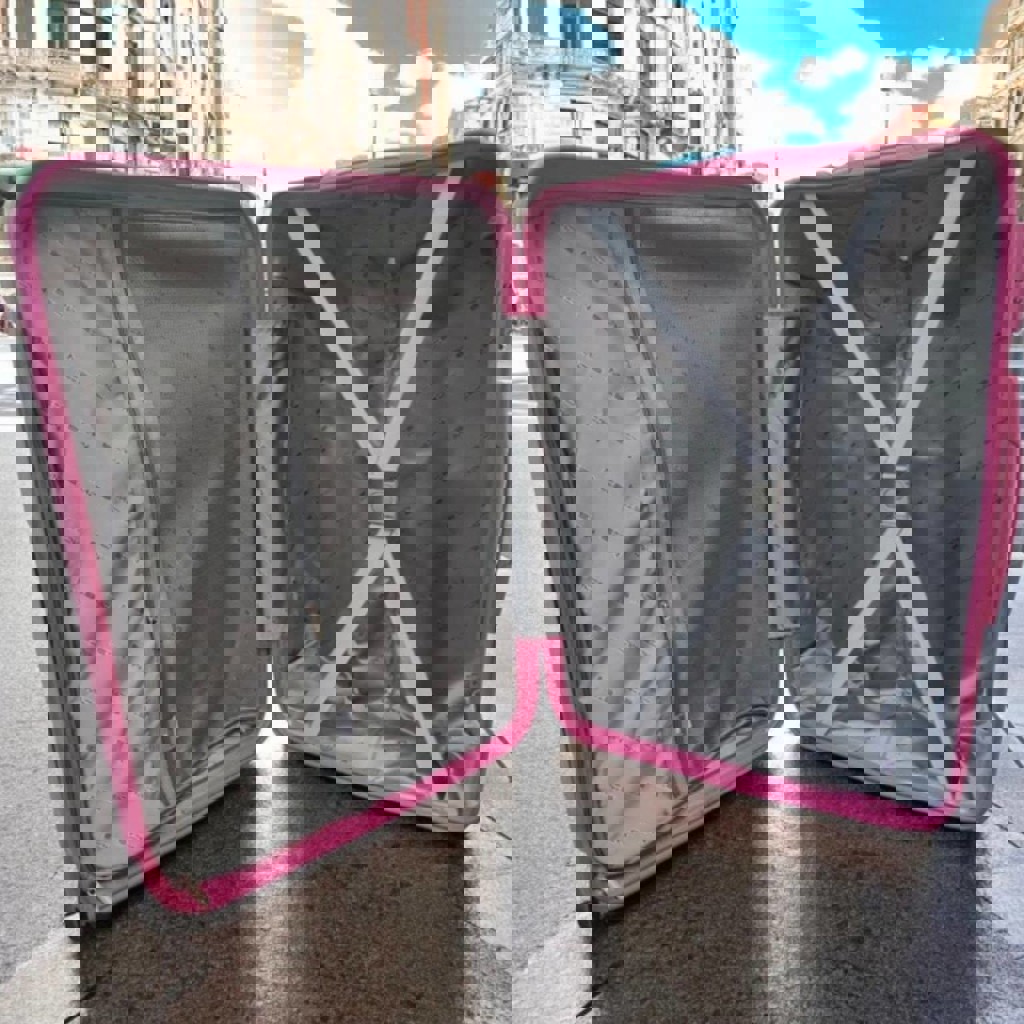 Чемодан из полипропилена, размер M. Цвет: фуксия. Размеры: 65 x 46 × 27. Состояние: 10/10. В подарок качественная спортивная сумка.