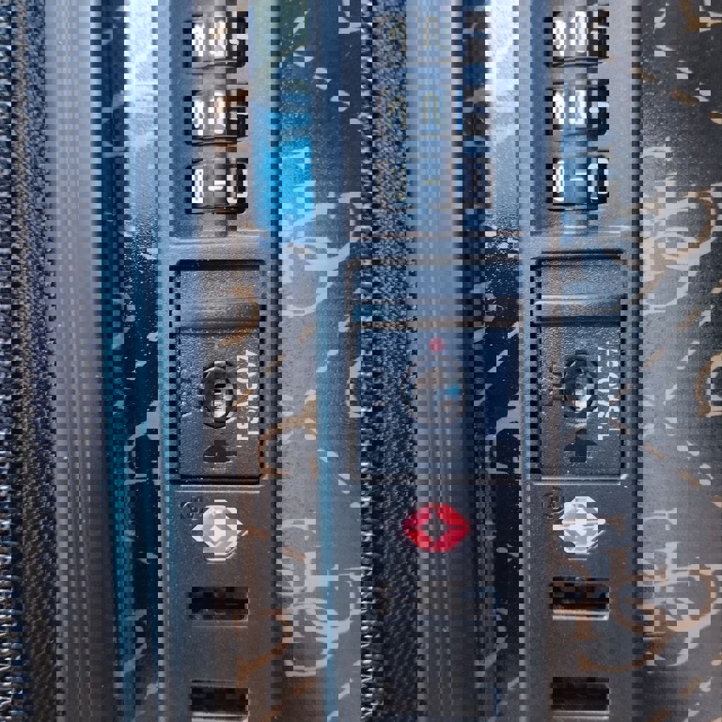 Чемодан размером М, 40×55×25 см, с кодовым замком, имеется несколько царапин.