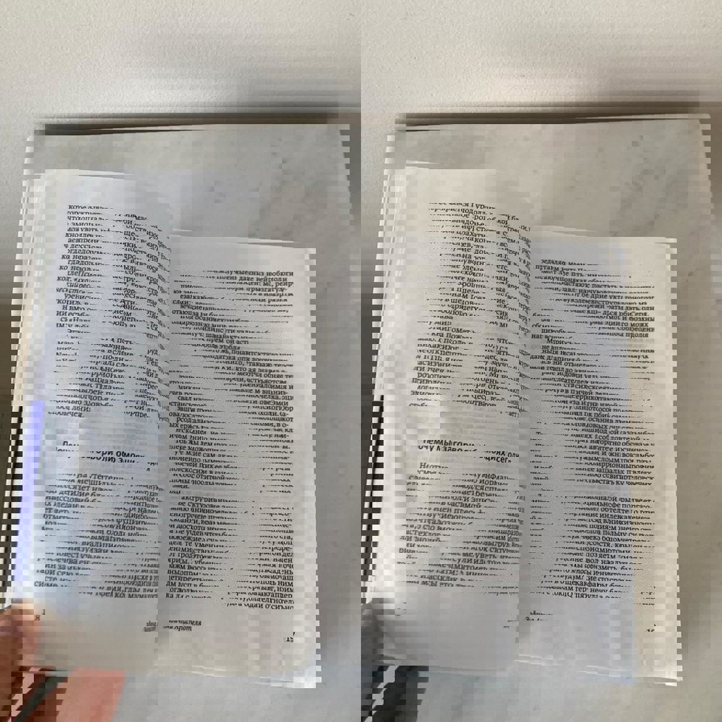 Была с ней ванной, потому состояние не лучшее, первые 50-70 страничек подсохли, на текст не повлияло, сделала фото как пример
