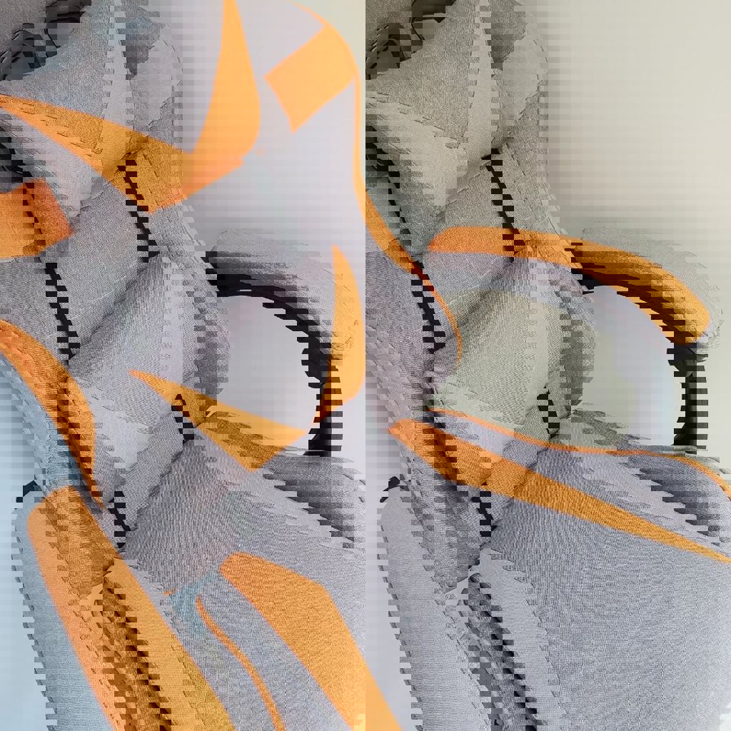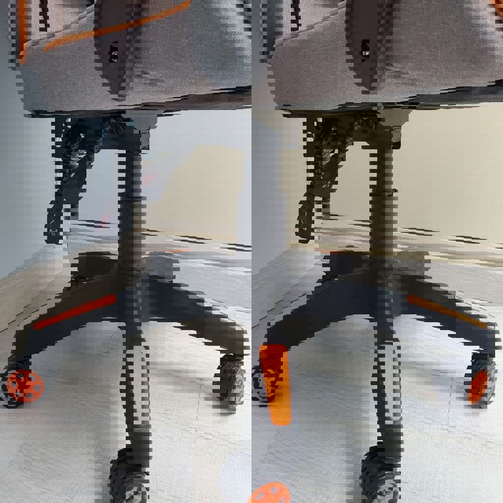 Абсолютно новый стул, мега удобный. Сидела только для пробы. Регулировка - вверх вниз, спинка вперед назад. Материал текстиль, вкусный оранжевый цвет. Не из кожзама. Тк вообще не был в пользовании.