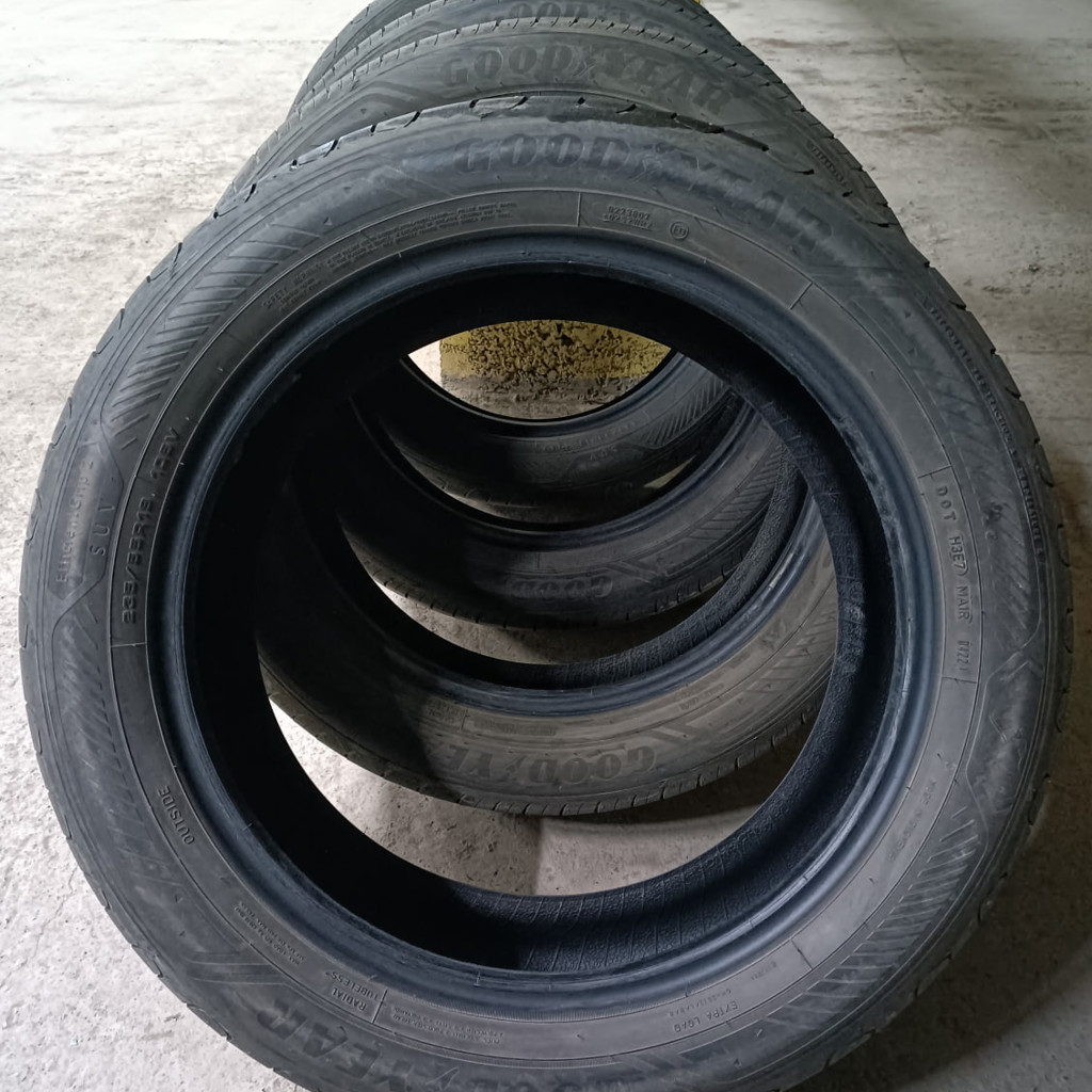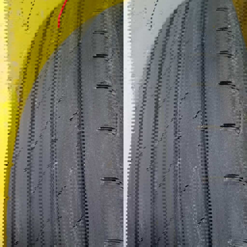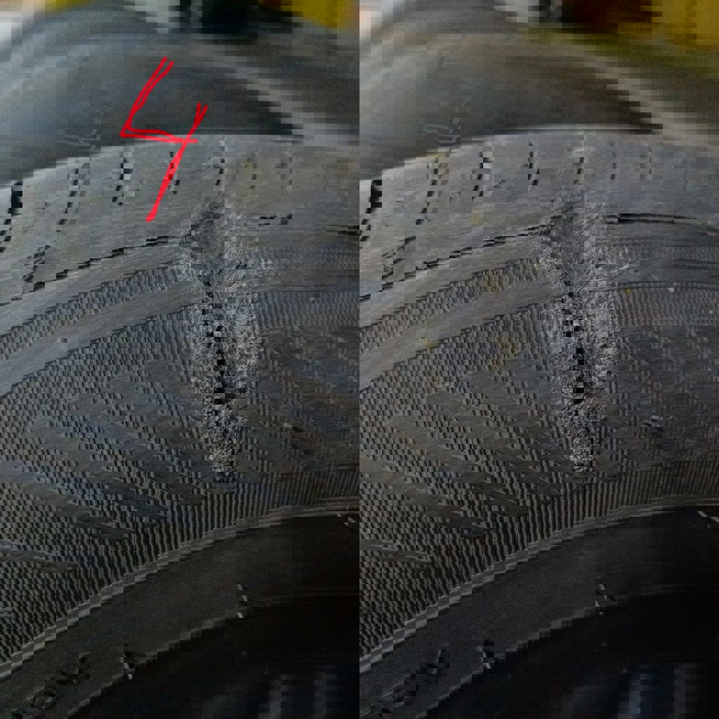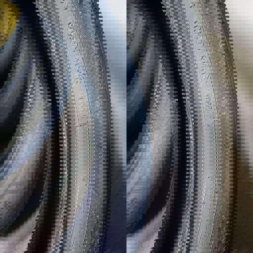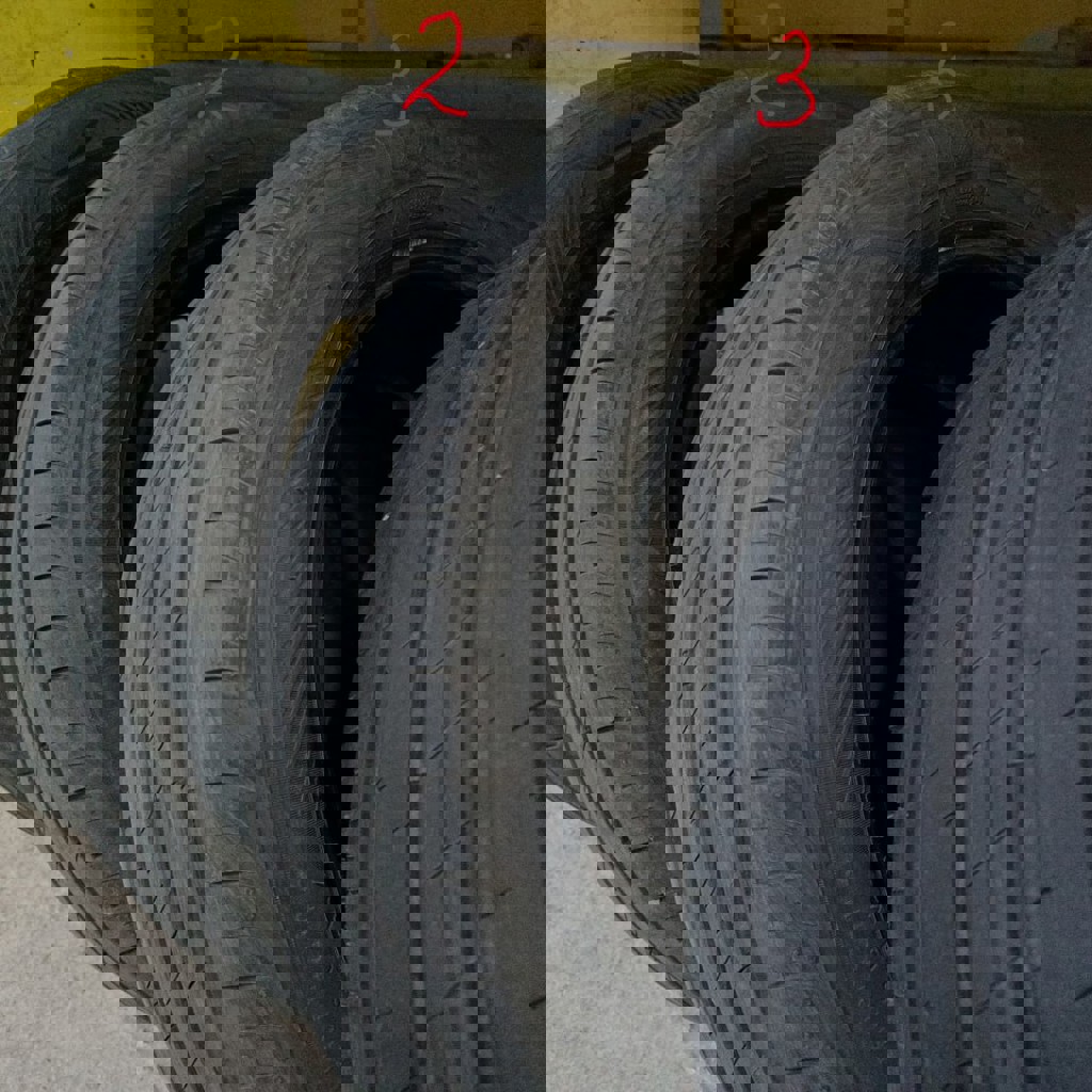 Комплект покрышек 235/55 R19 V XL. Состояние каждой на фото. Износ равномерный, до меток ещё катать и катать. Три в очень хорошем состоянии: без повреждений; проколы были, но качественно устранены; ничего не травит. На одной из покрышек есть повреждение (боковой порез): достаточно глубокий, но не сквозной; корд цел; давление держит. Я долго ездил с этим повреждением, но не советую так делать. Думаю, что поддаётся ремонту в хорошей мастерской. Итого: 3 покрышки в хорошем состоянии, 4я будет в таком же, если отремонтировать.