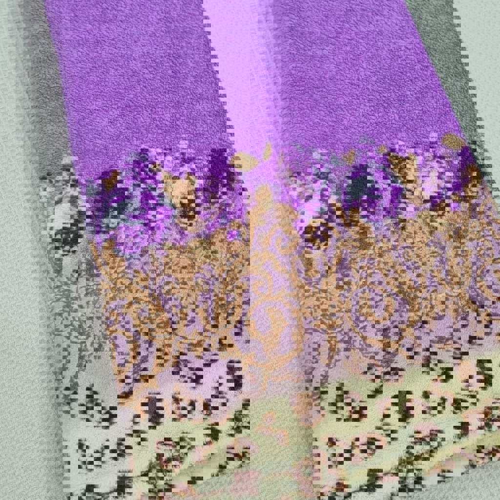 Мягкое и уютное покрывало-плед в нежном сиреневом оттенке с изящными бежевыми узорами по краям, размер 190x210 см. В отличном состоянии, очень мягкое и приятное. Добавит красоты и уюта в ваш дом.