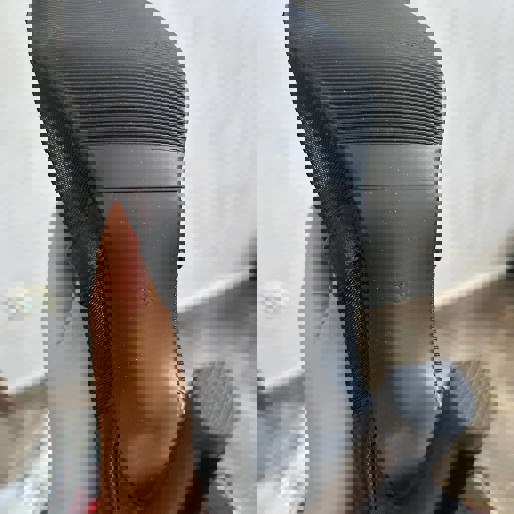 Размер 38, но по факту маломерят (у меня 37). Каблук 9-10 см. Удобные. Танцевала в них не сильно много. Из дефектов - пытался погрызть пес, все на фото.