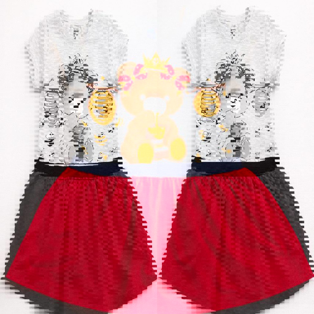5. Детское платье из хлопка, размер 98. Принт медведь с красной юбкой. Цена 5 лари