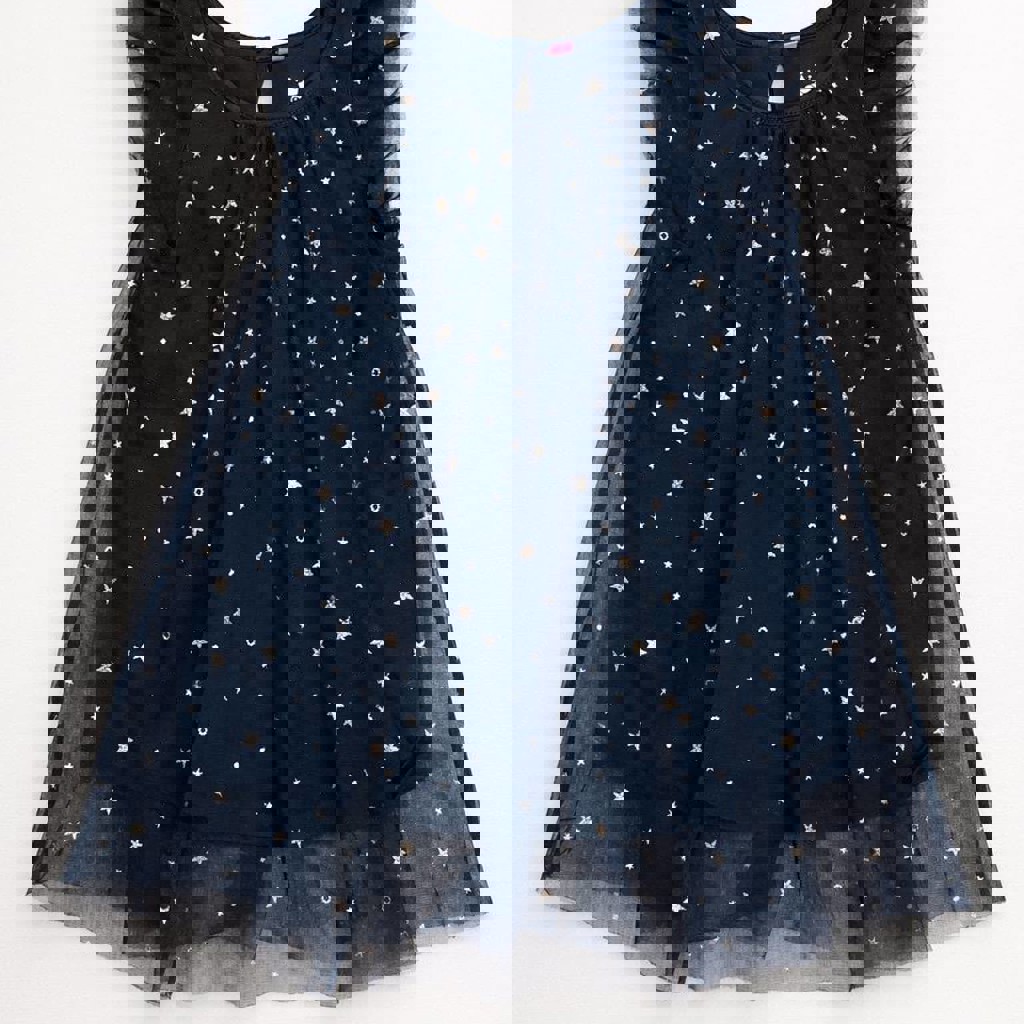 7. Детское платье, размер 92. Тёмно-синее, сверху сетка со звёздами. Нарядный вариант для праздников, состояние хорошее. Цена 10 лари