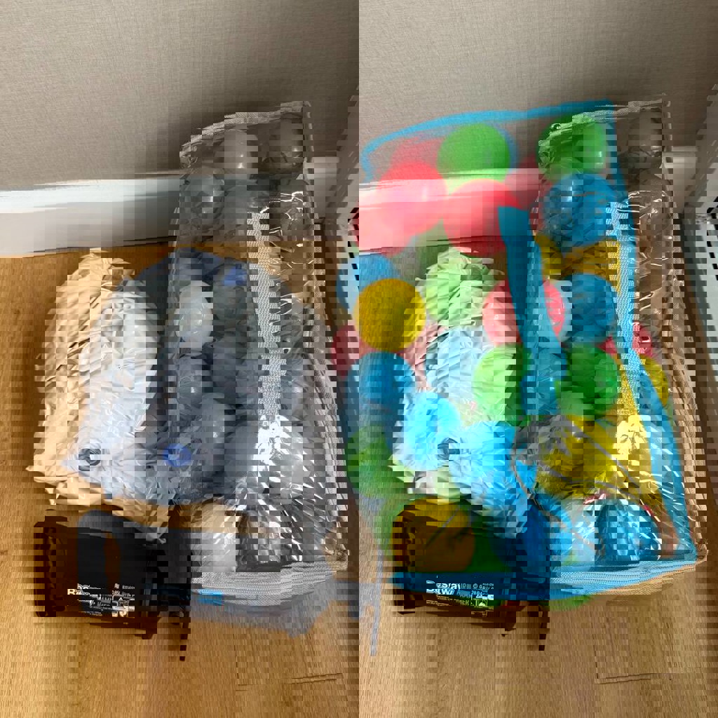 Квадратный, винил, 2-х камерный. Состояние 10/10. Насос и шарики в подарок. Летом — с водой, зимой — сухой бассейн или ванночка.
