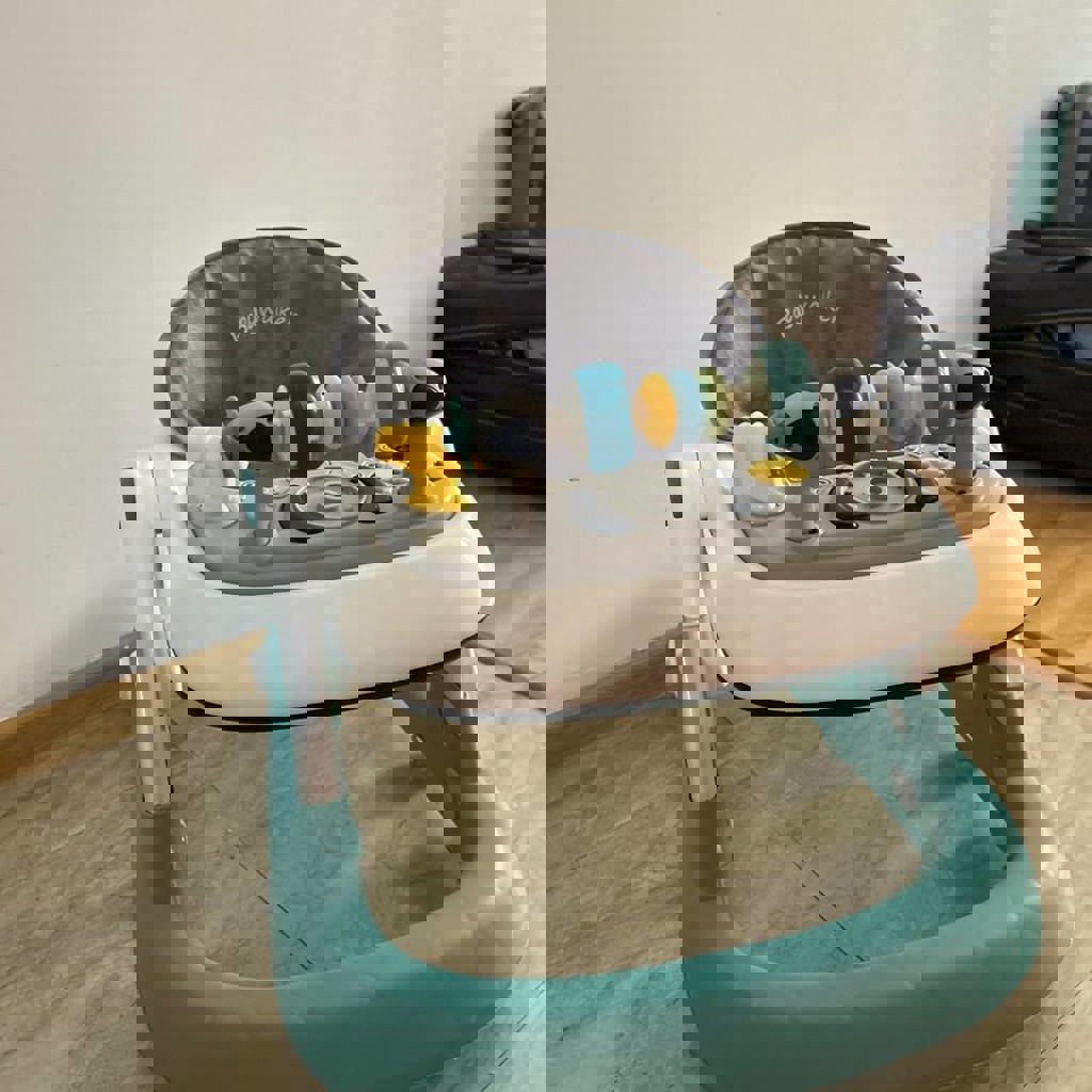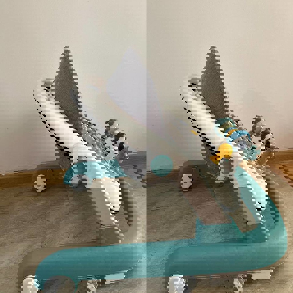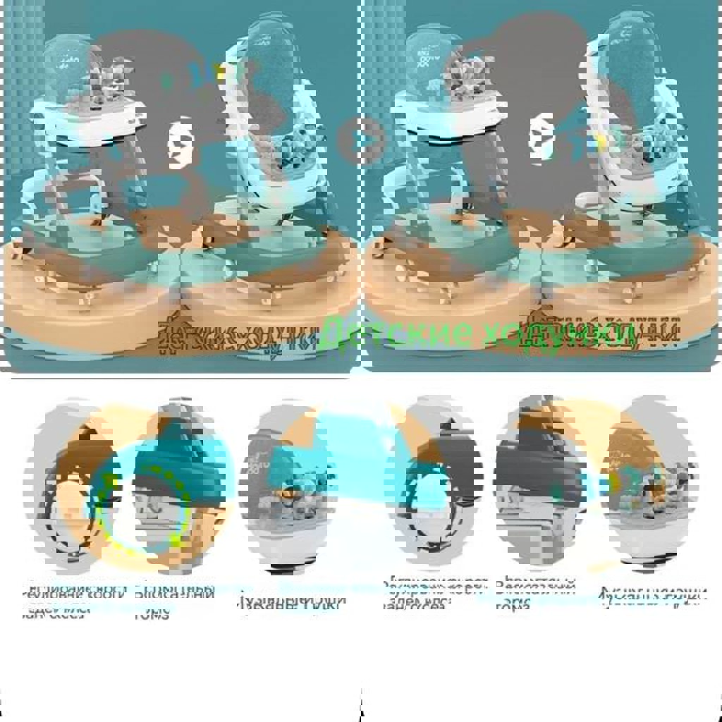 Силиконовые колесики, 3 регулировки сиденья, игровая панель на липучках, можно снять и будет столик.