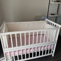 Продадим детскую кроватку хорошего качества. Можно укачивать в ней ребенка, можно зафиксировать, чтобы не качалась. Только нет фанеры под матрас. Матрас есть.