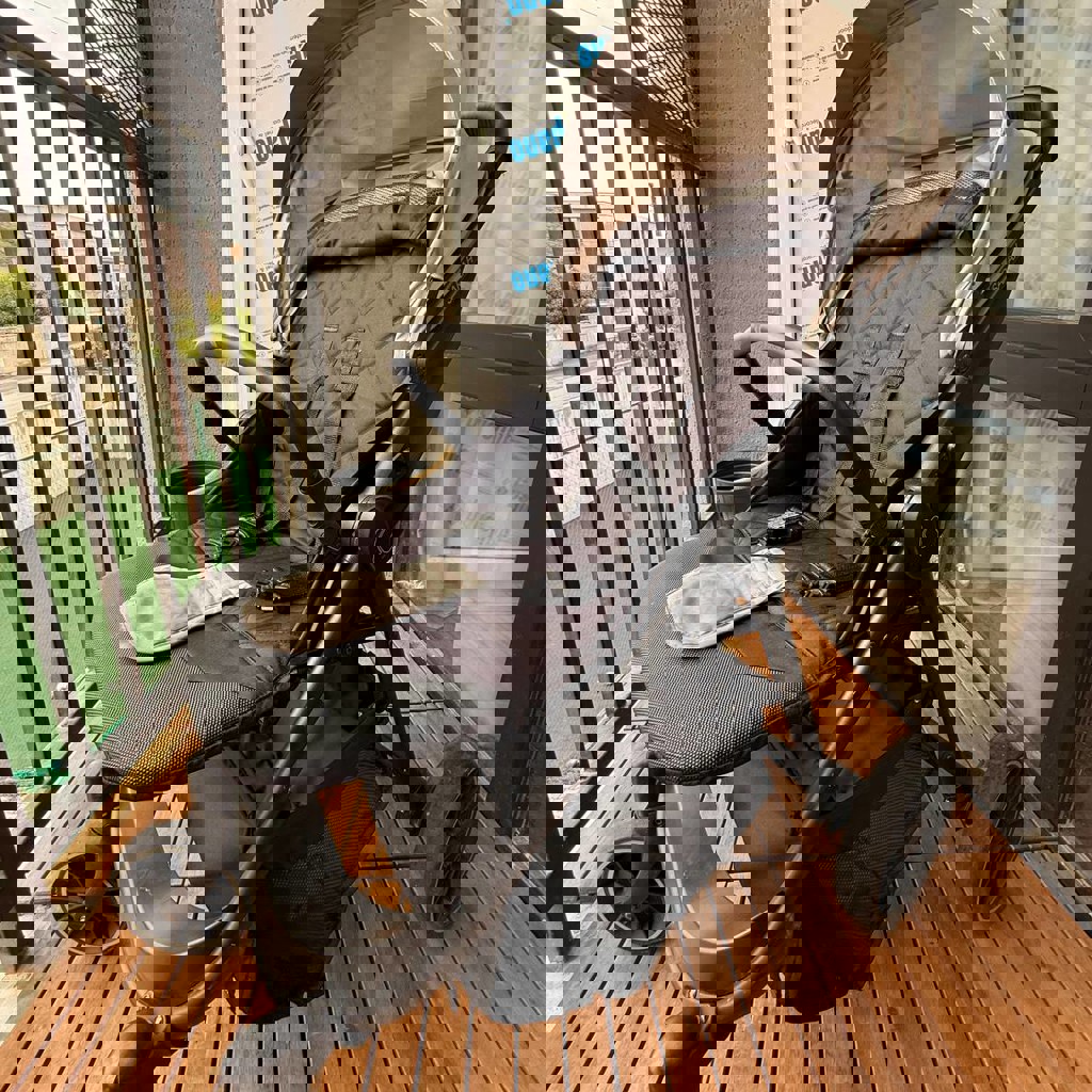 В хорошем состоянии, есть небольшие нюансы в эксплуатации. Удобная, лёгкая в использовании) Имеется чехол для холодного периода!!!