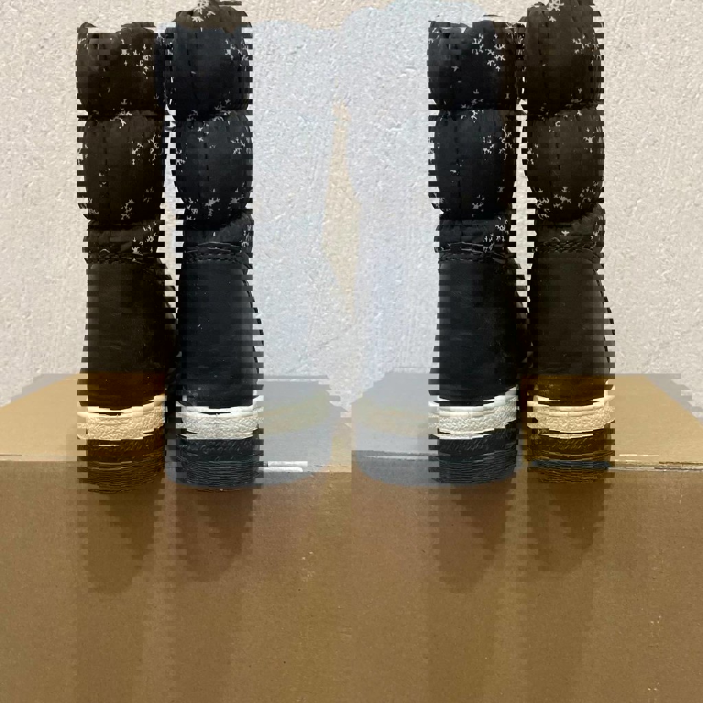 Размер 32-33, длина стельки 20,5 см. Хотя на самих сапогах указан размер 36. Но они впритык оказались ребенку с 33 размером ноги. Состояние новых.