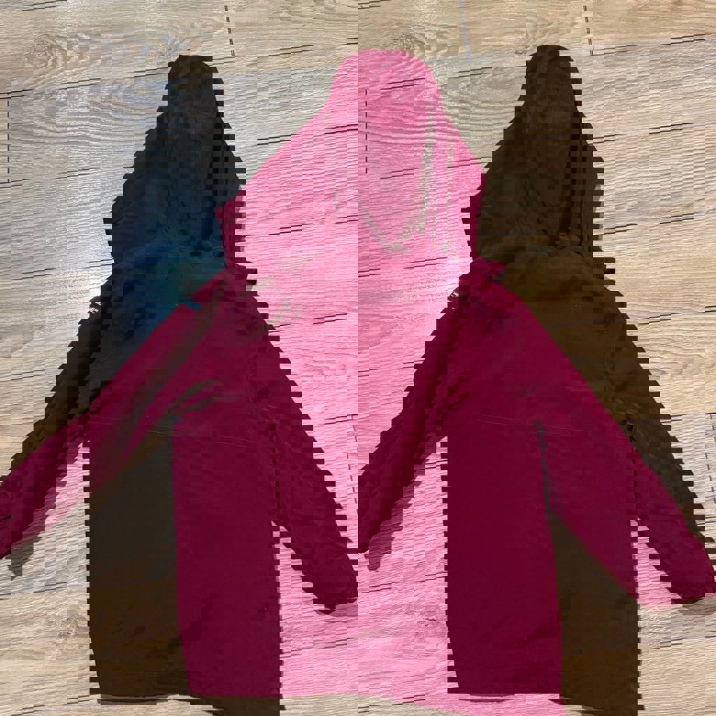 Бордовая, размер 110-116, хорошего качества и утепленная.