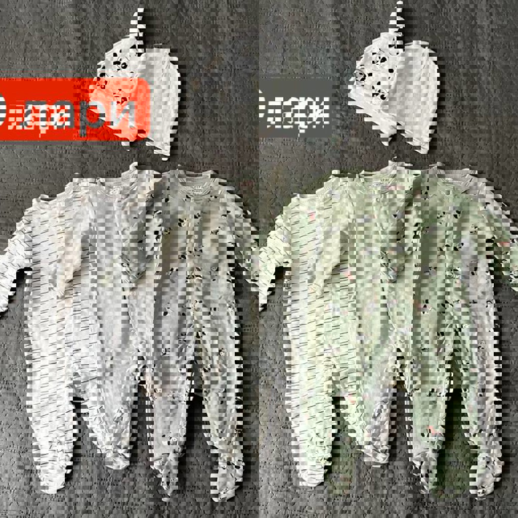 Детская одежда в отличном состоянии, без дефектов, продается наборами как на фото. Ткань везде 100% хлопок, кроме коричневого пушистого комбинезона (полиэстер).