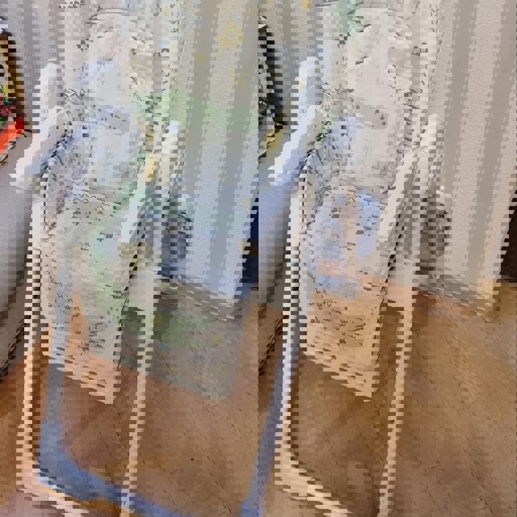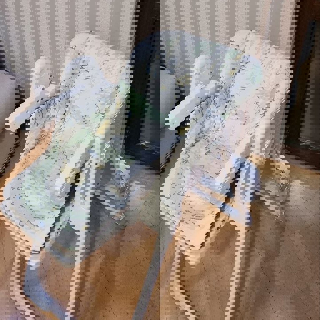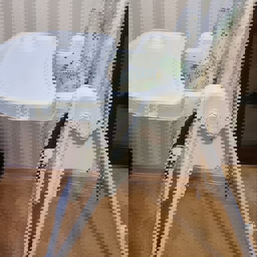 Детский стульчик Kikka Boo, вес до 32 кг. Двойной столик. Снимаемая моющаяся накидка из кожзама. Регулируется по высоте, наклону спинки, глубине столика. Сзади оборудовано места для хранения столика. Отсутствуют ремешки для крепления (никогда не пользовались, сняли и потеряли при переездах).