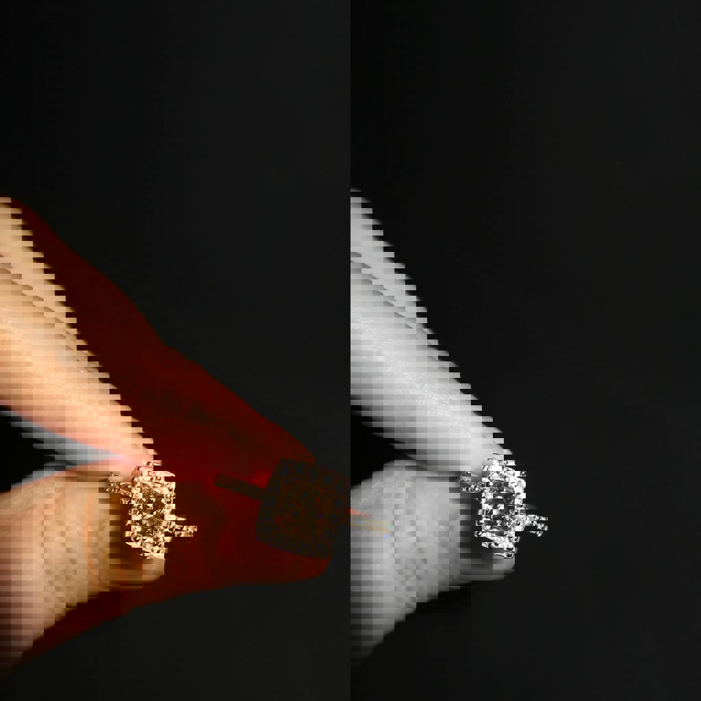 Природный бриллиант — 0.85 карата, белое золото 750 пробы (18K), общий вес изделия: 2.59 г, классический дизайн с дополнительными камнями, состояние хорошее.