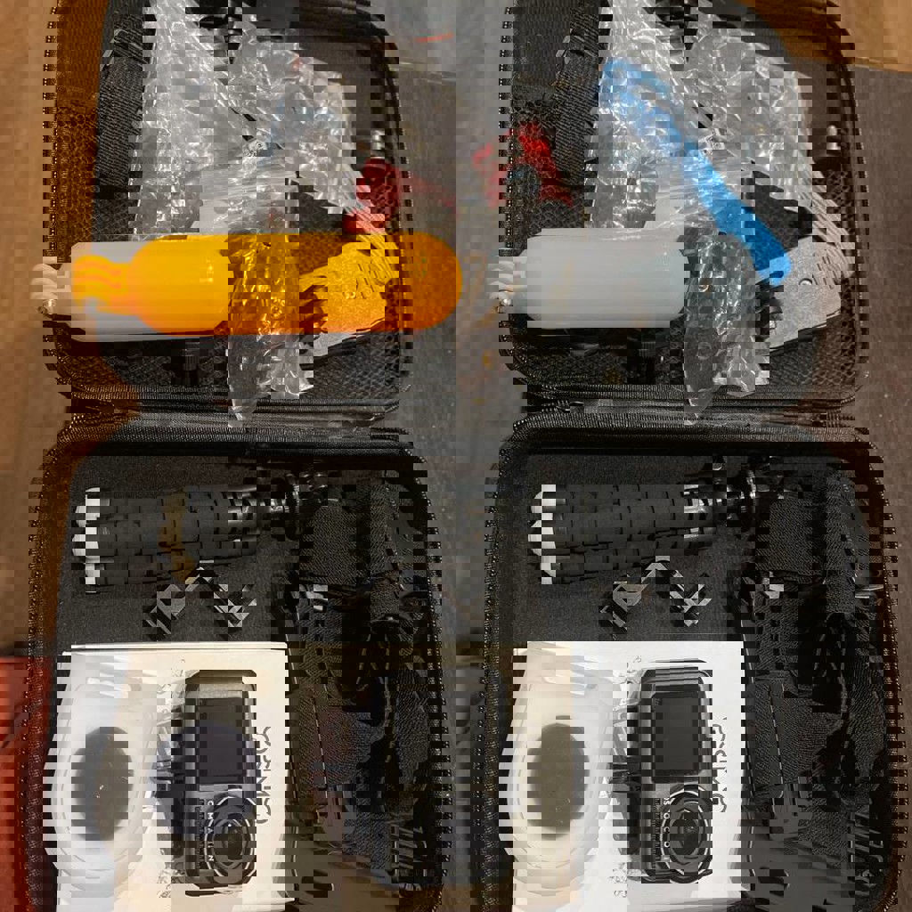 Состояние отличное! В комплекте nd16pl фильтр, карта памяти на 256gb, переходник под вертикальную съемку, мини штатив, набор разных креплений, чемоданчик.