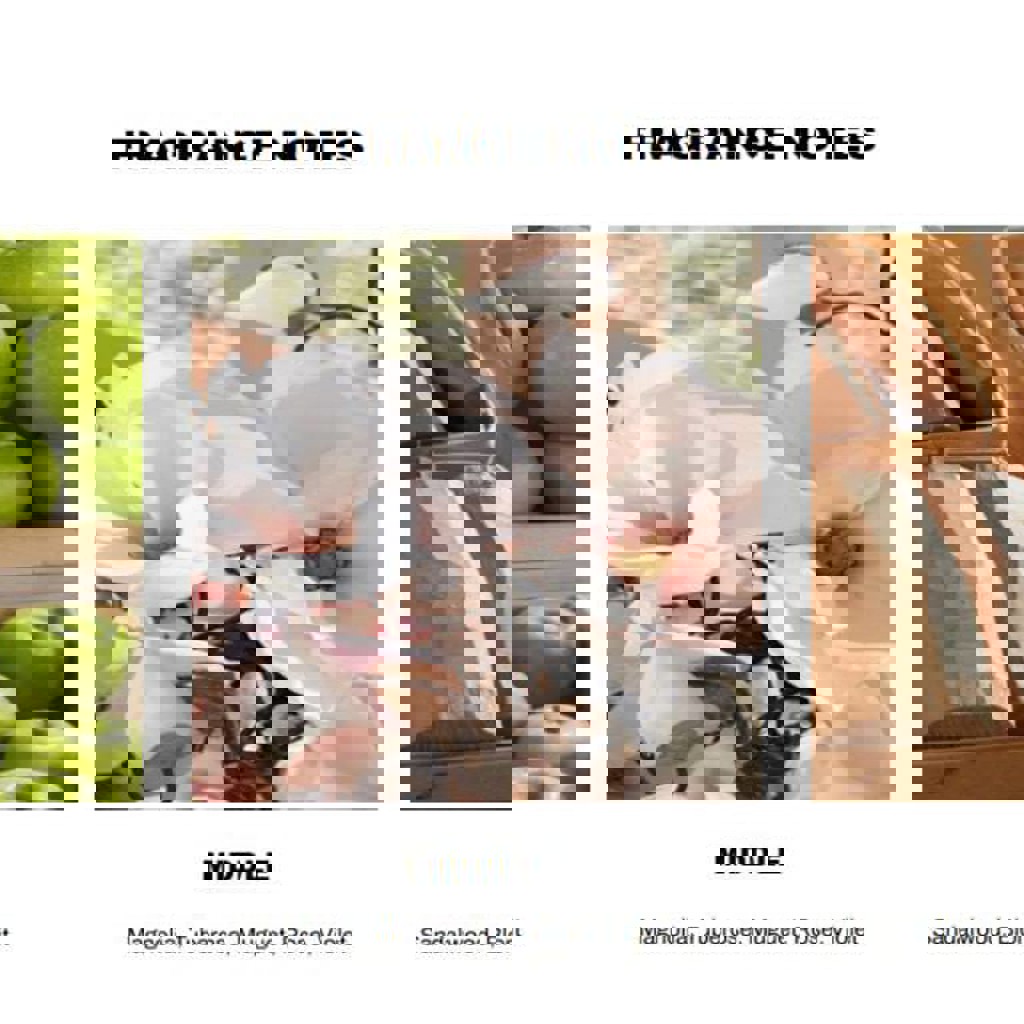 Зеленый свежий аромат, с небольшими нотами дерева и сладости