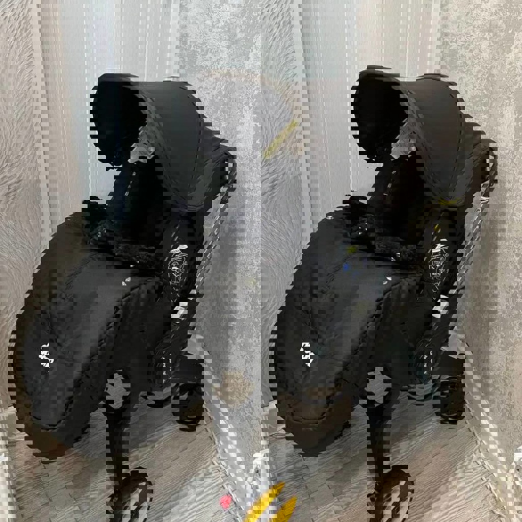 Оригинал в черном цвете. В комплекте очень теплая накидка на ножки с искусственным мехом внутри. Комплект: Сама коляска, Теплая накидка на ножки, Рюкзак, Москитная сетка, Вкладыш для новорожденного. В использовании была совсем немного.
