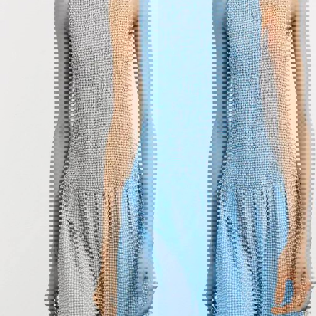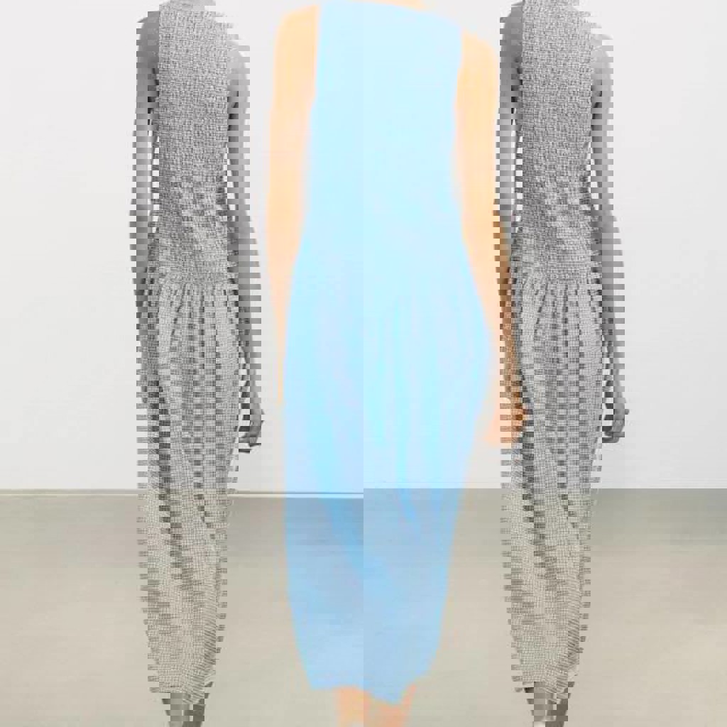 Платье-миди голубое в белую клетку