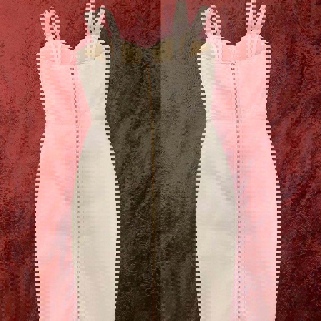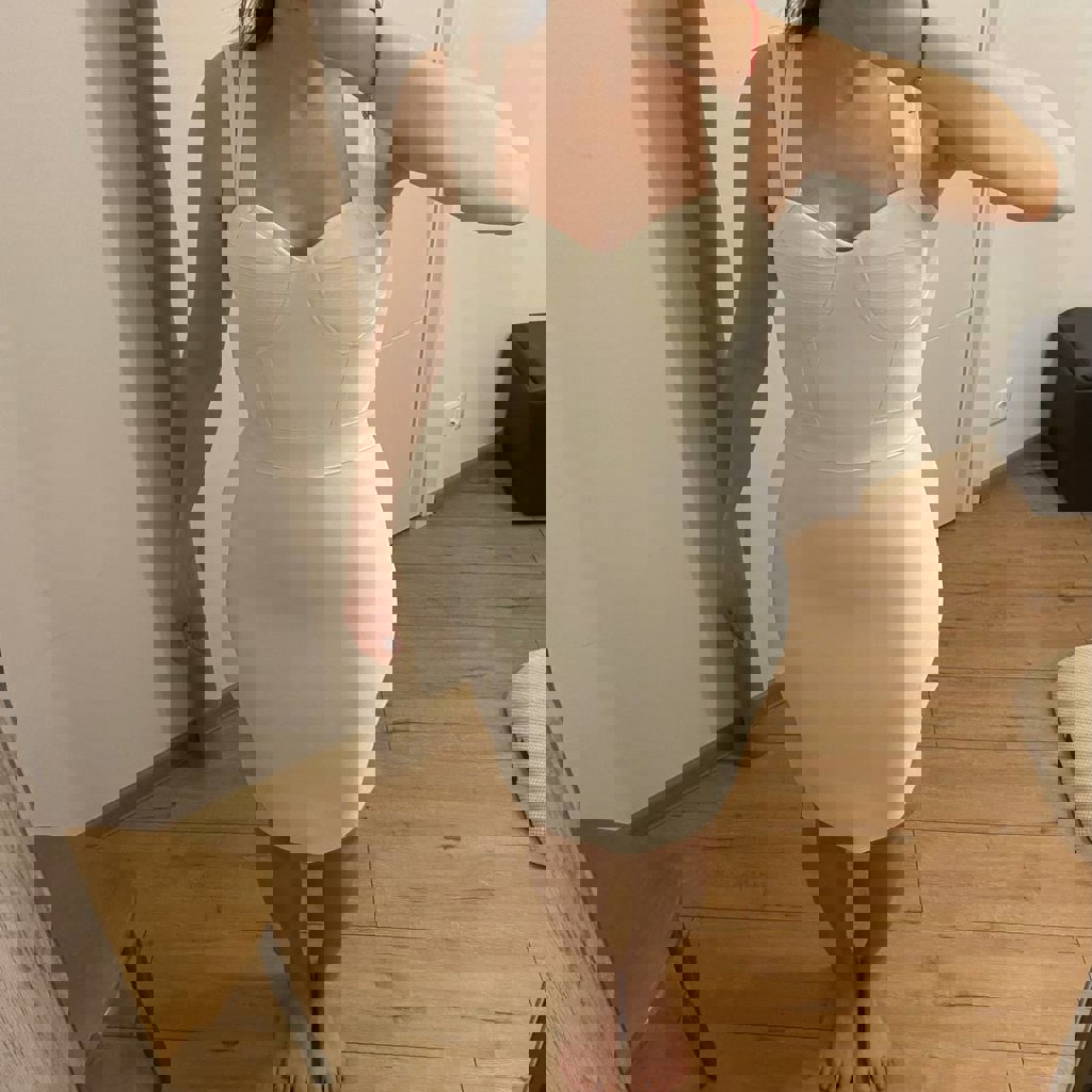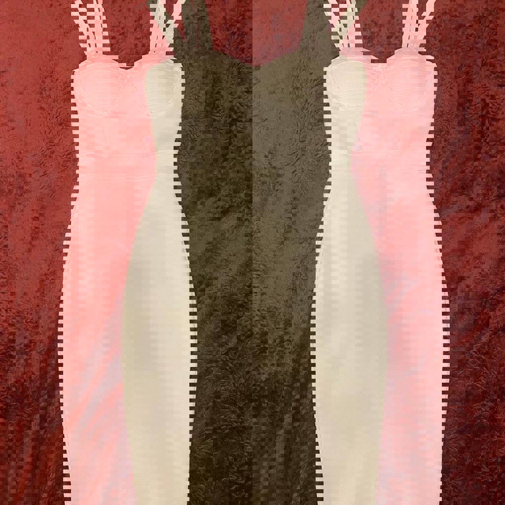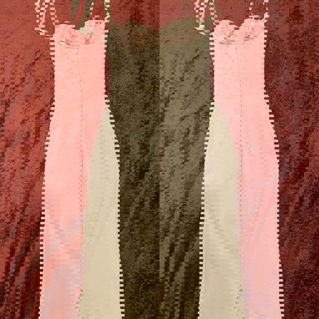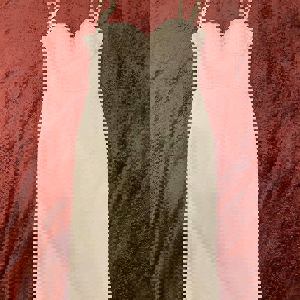 Платье в обтяжку телесно-розового цвета, размер s/xs, немного тянется, сверху ленты завязки, грудь пушап.