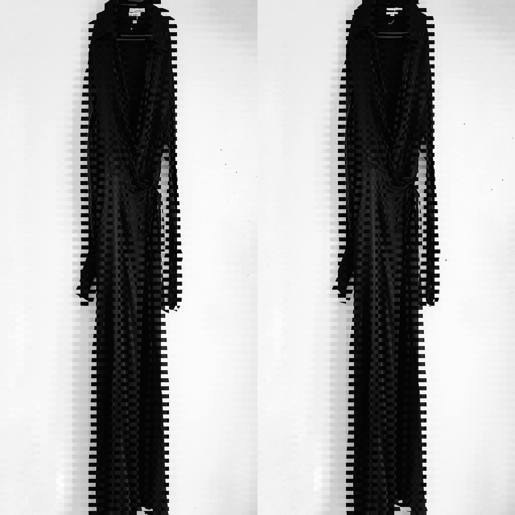 Платье макси из плотной атласной вискозы от бренда love republic. Красивые манжеты и элегантный вырез на ноге.