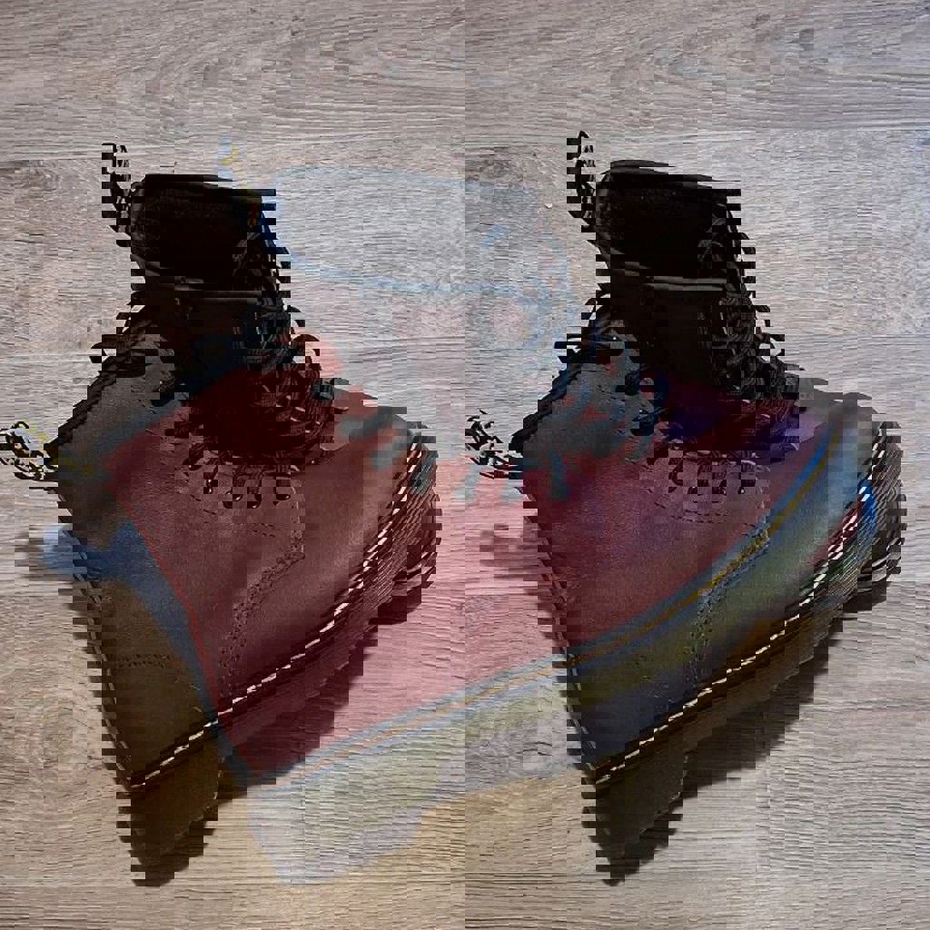 Ботинки Dr. Martens в красивом бордовом цвете. Модель на 8 дырок со шнуровкой и удобной молнией сбоку. Размер: 38 (UK 5). Натуральная кожа, прочная фирменная подошва с жёлтой прострочкой. Очень удобные, хорошо держат ногу, подойдут на каждый день и под джинсы, и под платье. Состояние: Носились пару раз. Практически новые. Выглядят стильно и аккуратно, цвет вживую очень красивый.