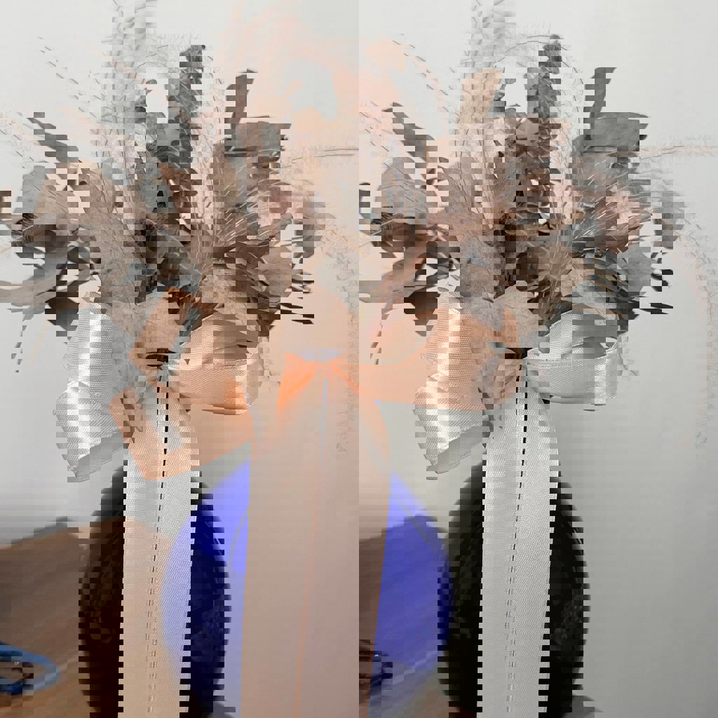 Сухоцветы с бантом в комплекте с синей вазой.