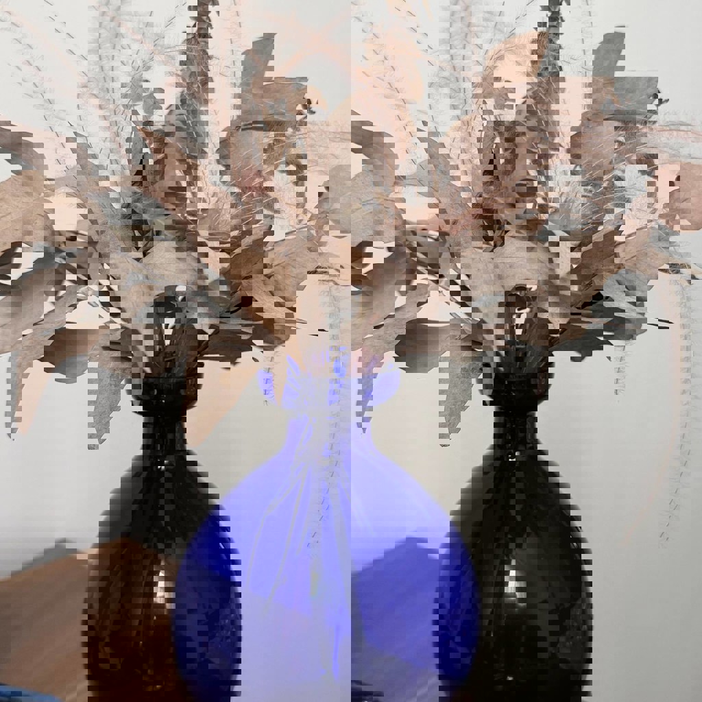 Сухоцветы с бантом + синяя ваза