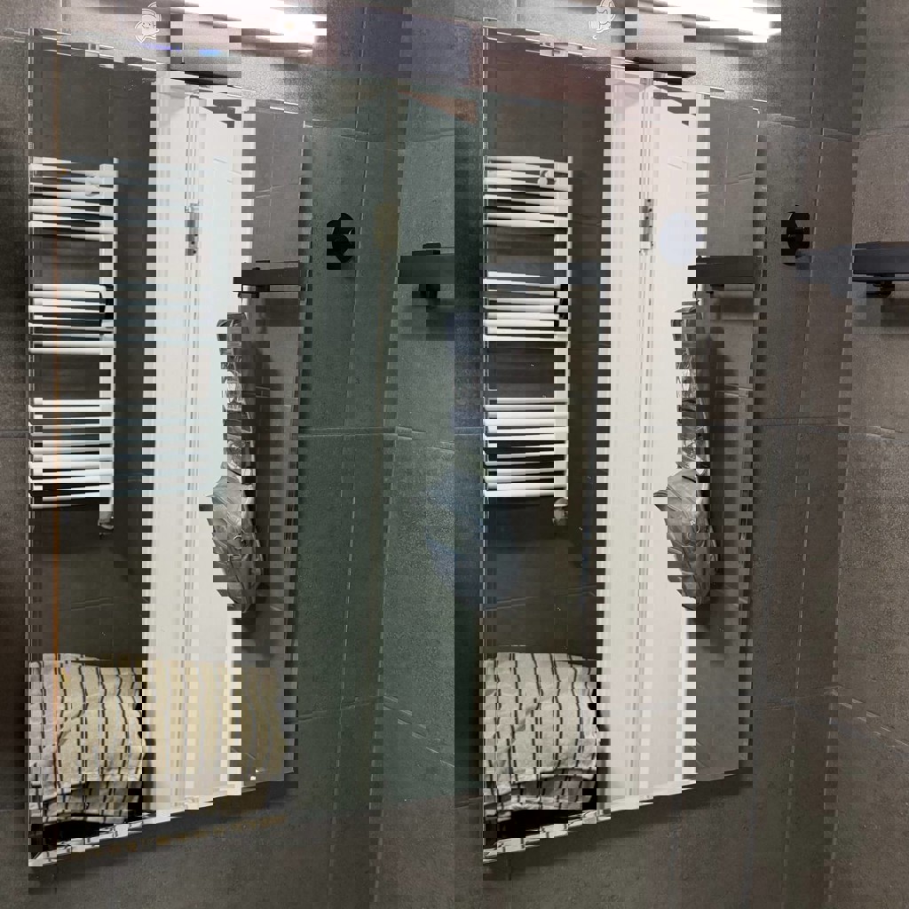 Душевая система в комплекте с раковиной и зеркалом.