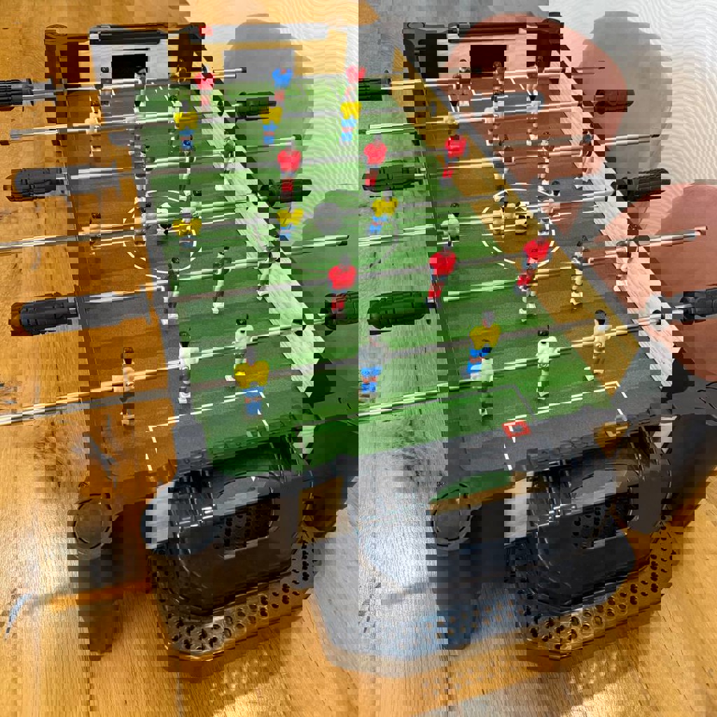 Футбол и аэрохоккей. Собранная, полный набор. В идеальном состоянии. В комплекте: стол, 2 мячика, 2 пушера, 1 шайба для аэрохоккея на батарейке. Есть ножки: 62.5 см. Размеры стола: ширина 40.9 см, длина 72.9 см.