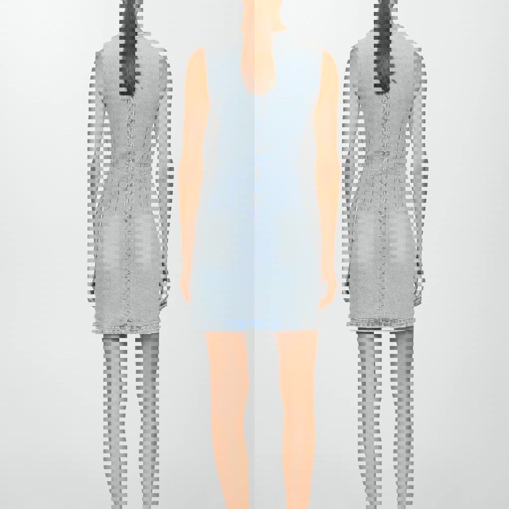 Модель платья из джинсовой ткани, размер S, материал - хлопок.