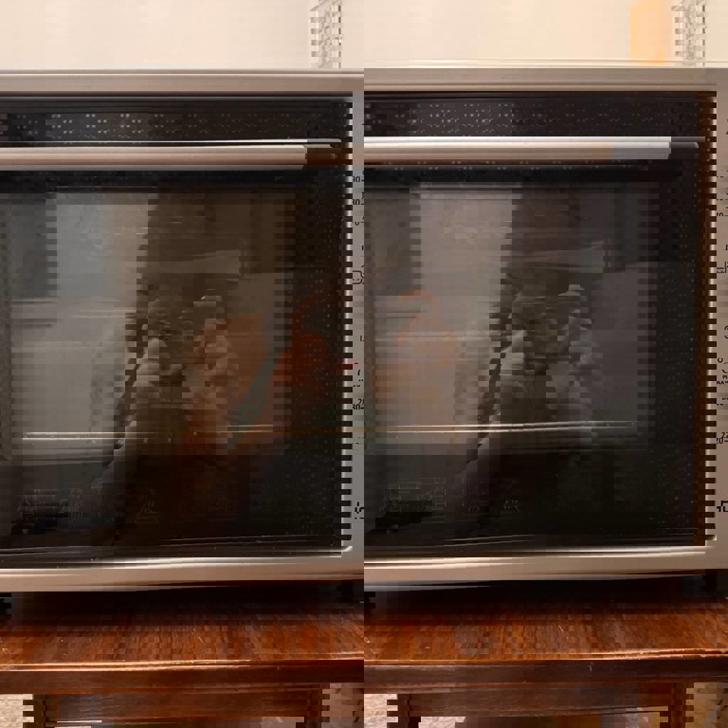 Электрическая духовая печь. 110 лари. Все работает отлично. В комплекте противень и круглая форма для запекания