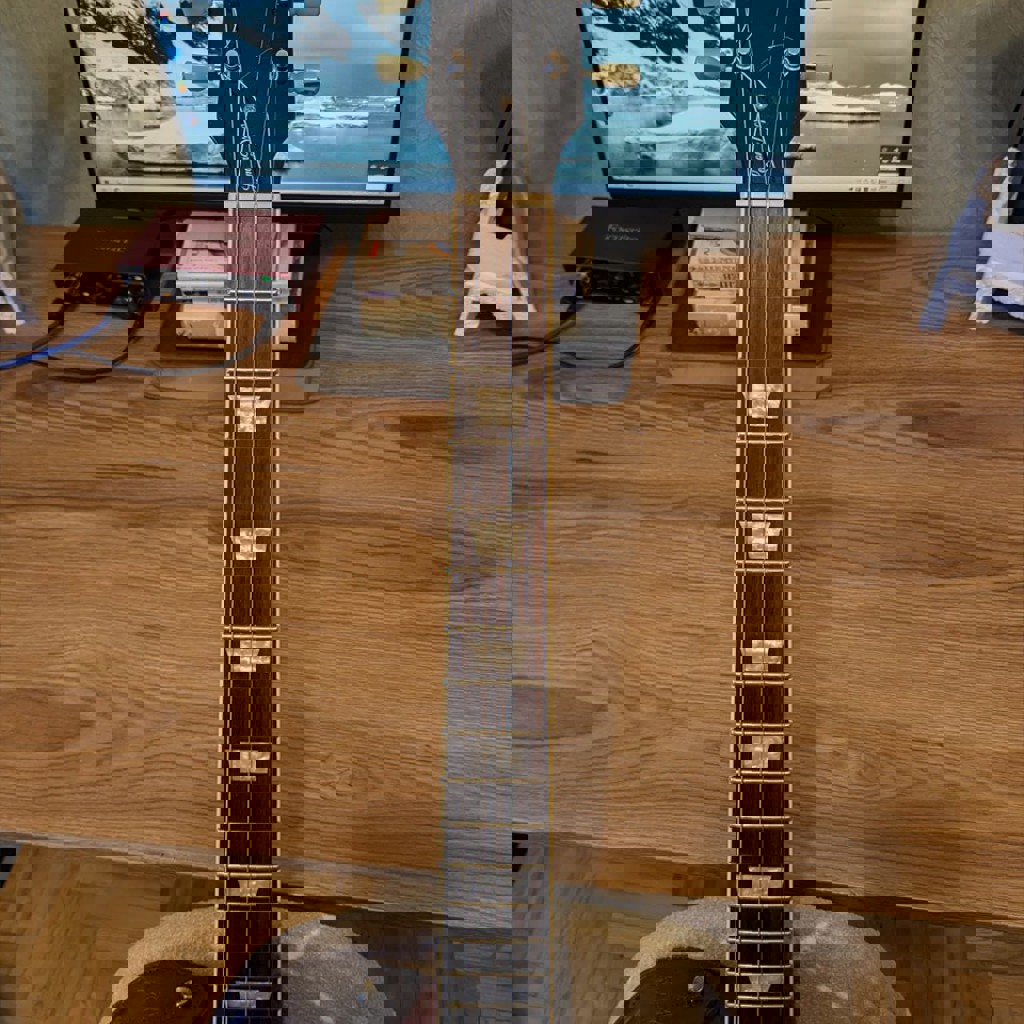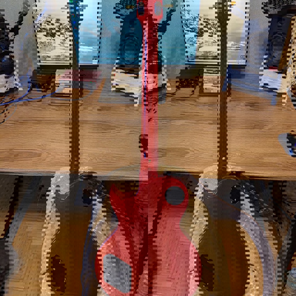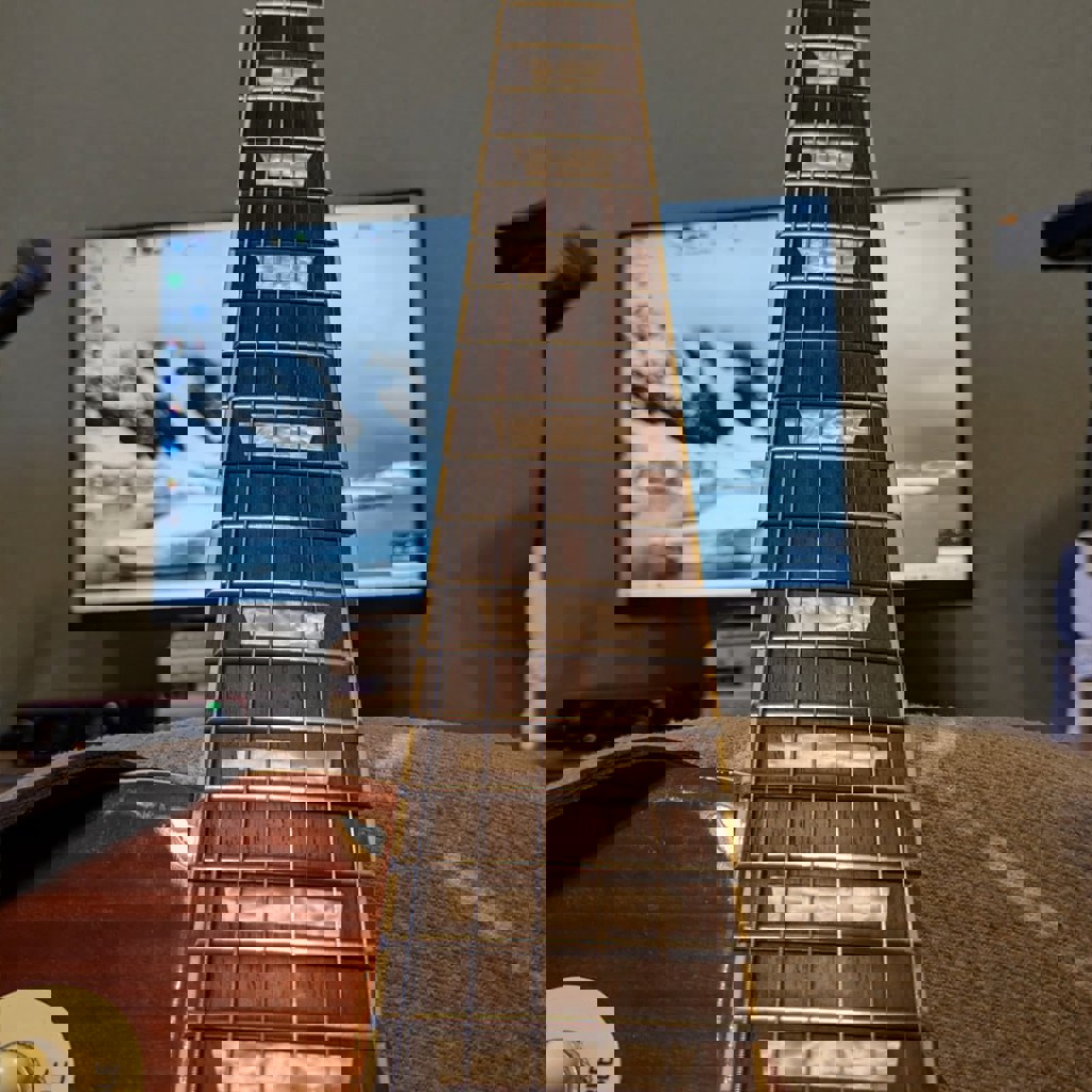 Классный олдскульный леспол. Сделана на совесть - очень удобная, качественная фурнитура, дооолгий сустейн. Корпус - махагони, накладка - клен. Родные хамбакеры выдают и мягкий джазовый клин и глубокий перегруз, играть одно удовольствие. В среднем ценовом сегменте один из лучших инструментов, которые у меня были. Использовалась бережно и только дома.