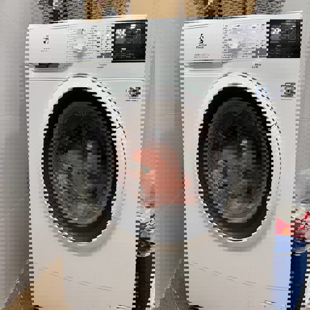 Стиральная машина Electrolux PerfectCare 600. Покупалась в 2022 году, использовалась аккуратно, всё работает. Загрузка: 6 кг, скорость отжима: до 1200 оборотов/мин, класс энергопотребления: А++.