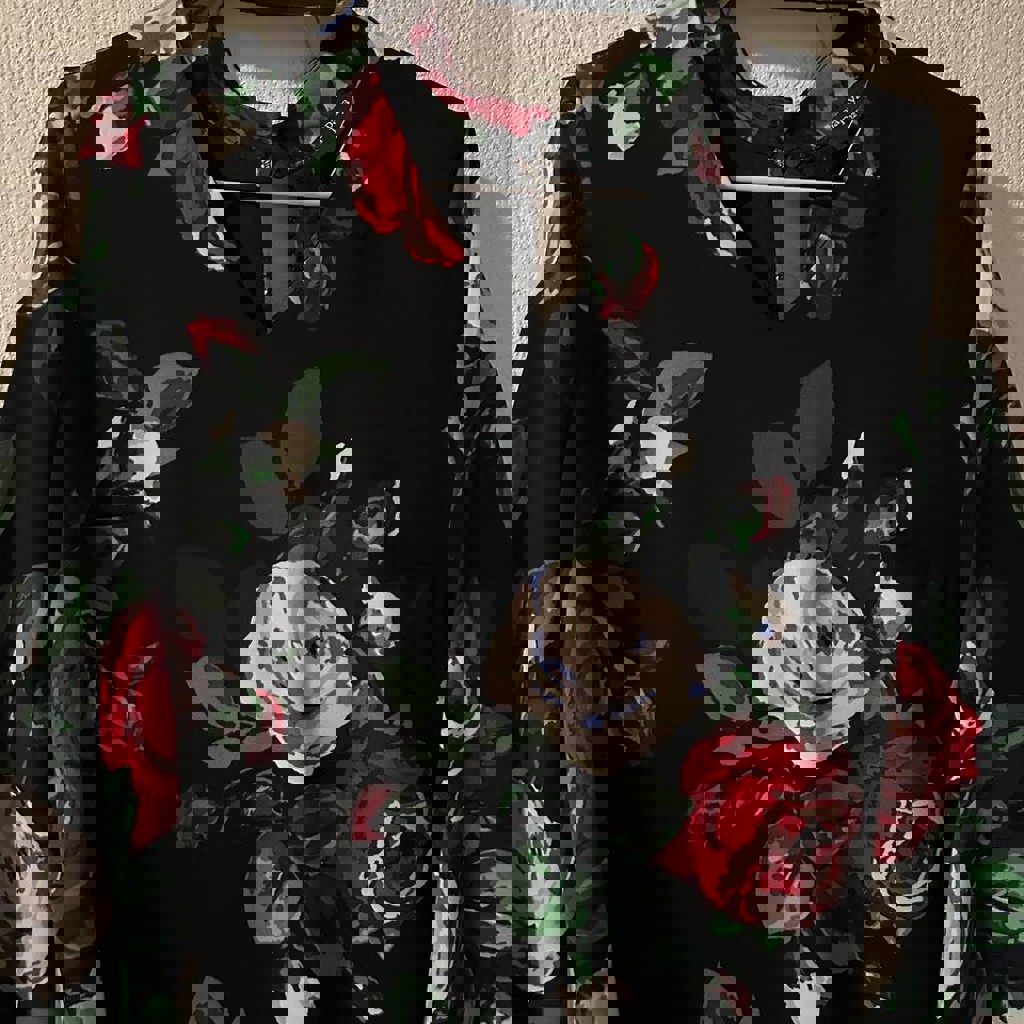 Размер 12( прекрасно пойдет и на 10). Воротник-чокер, сзади на двух пуговках. Рукав длинный клеш. Цветочный мотив, материал: полиэстер. Без бирки, не одевалась.