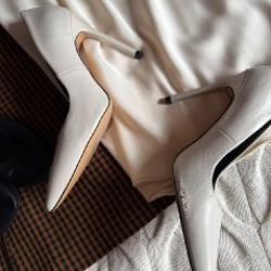 Элегантные белые лодочки с заострённым носком и оригинальным расклешённым каблуком. Состояние хорошее, есть потертость на носке (см. фото). Размер: 38. Каблук: устойчивый, около 6 см.
