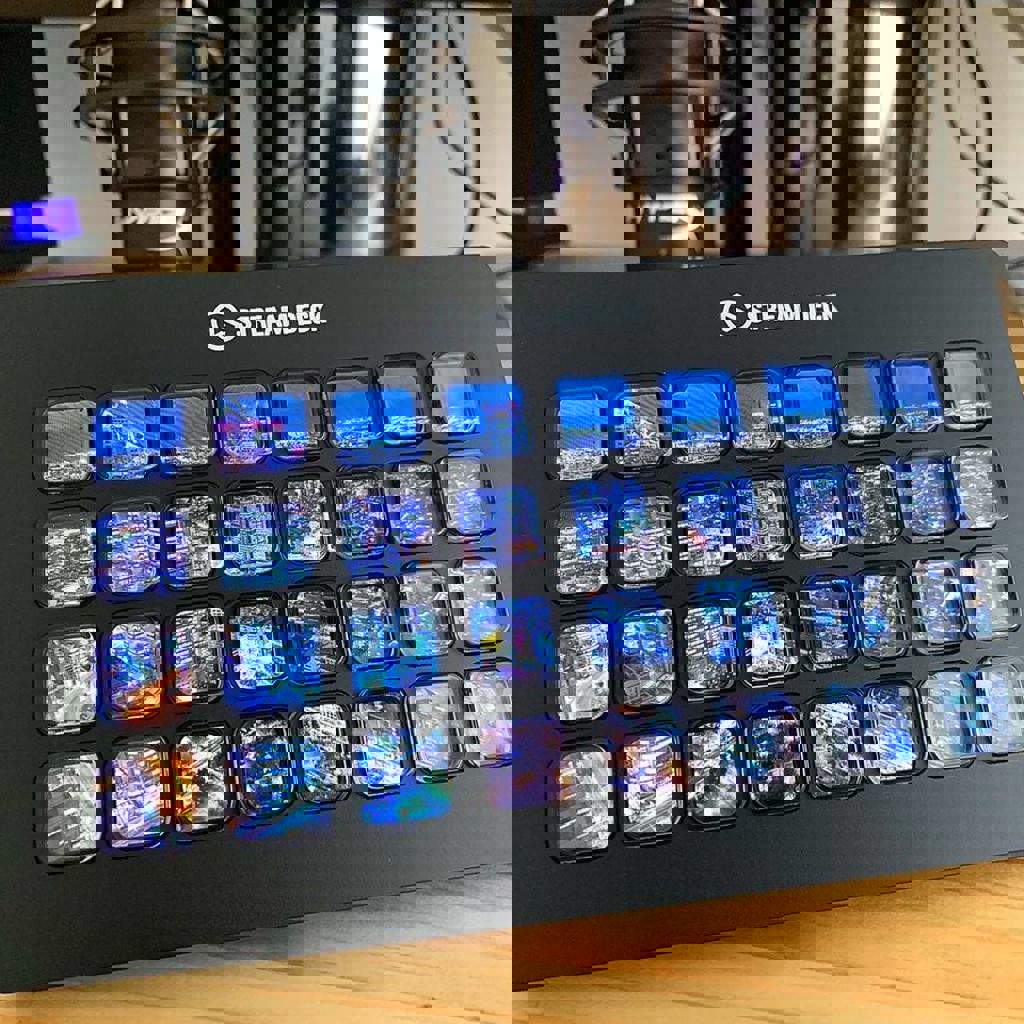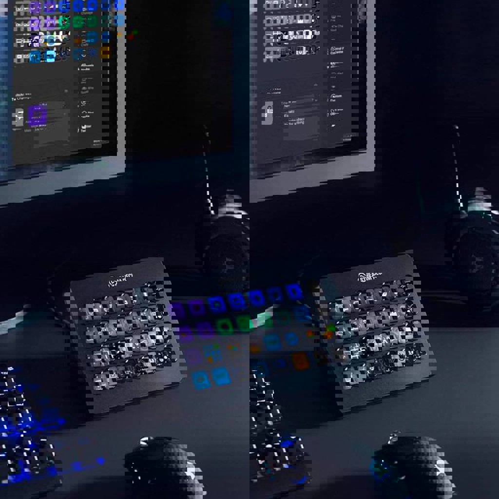 Состояние отличное, был в пользовании не долго. 32 LCD клавиши — каждая кнопка это экранчик, всё визуально и понятно. Управление в один клик — сцены в OBS, музыка, софт, Twitch, YouTube. Умные профили — сам меняет раскладку под открытую программу. Мультикоманды — одной кнопкой запускаешь целую цепочку действий. Магнитная подставка — регулируется, не скользит. Совместимость: Windows и macOS.