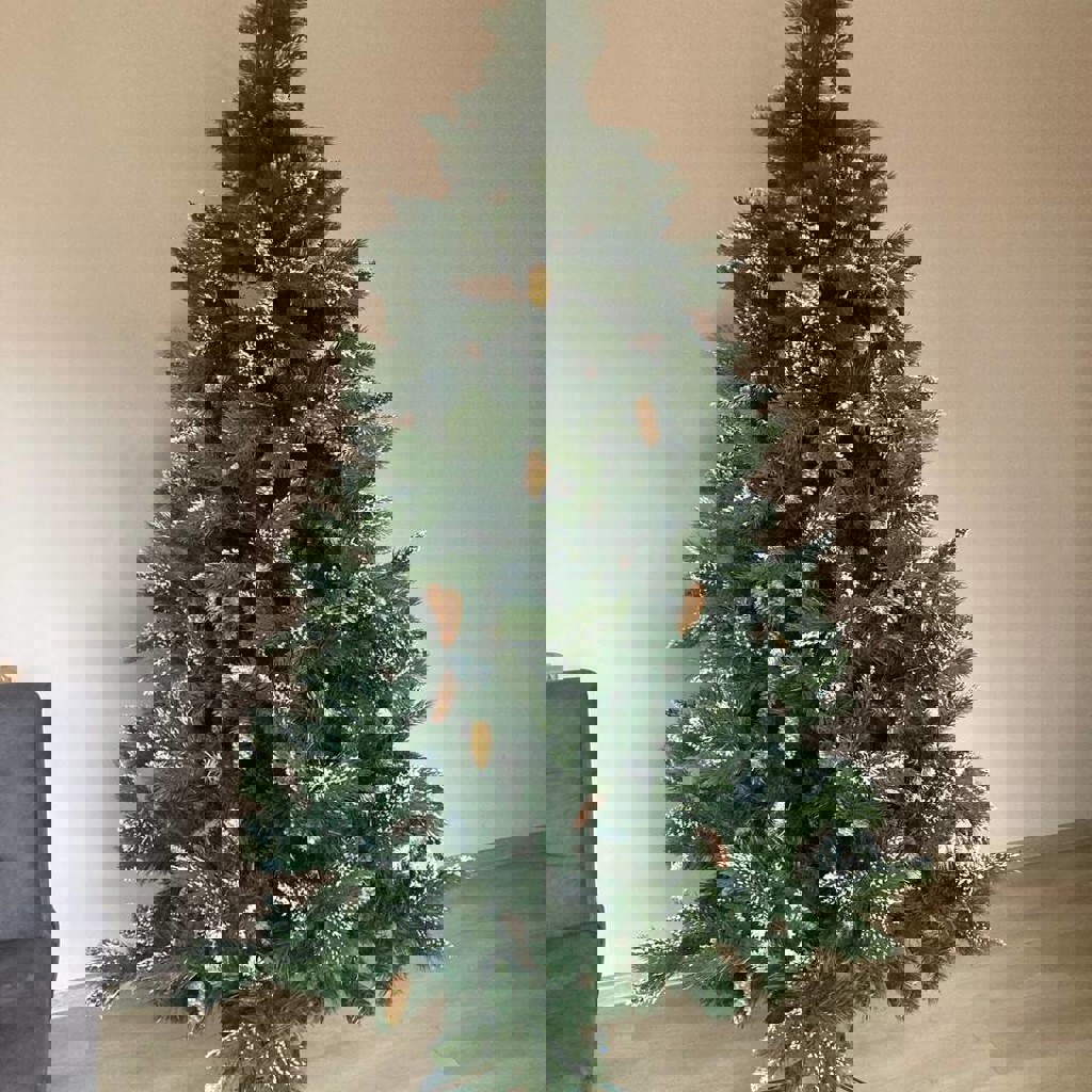 Елка искусственная 220 см в идеальном состоянии, шишки снимаются (собирались в лесу, красились и вешались отдельно)